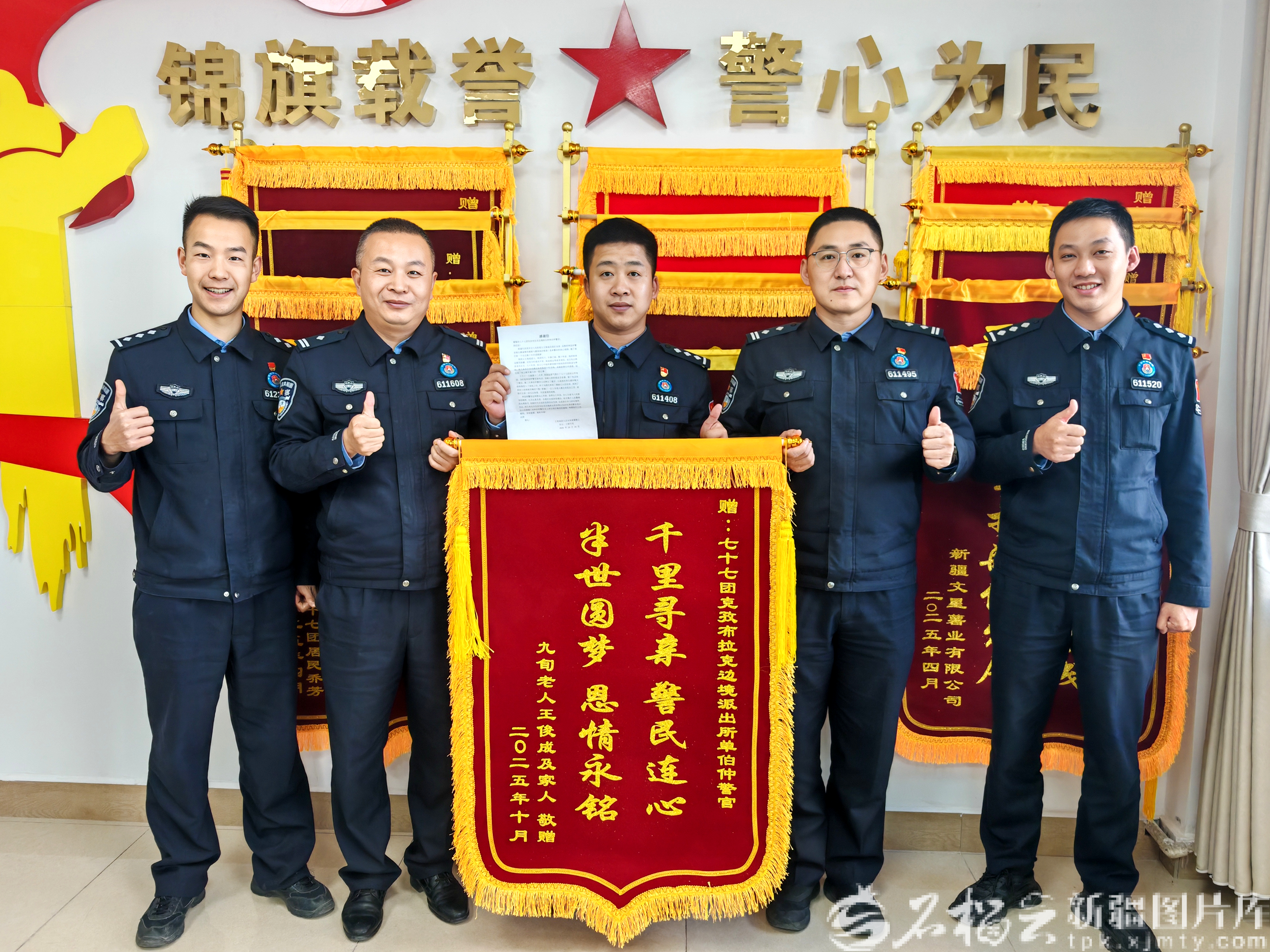 10月17日,克孜布拉克邊境派出所民警收到從四川寄來的錦旗和感謝信。王鵬飛攝