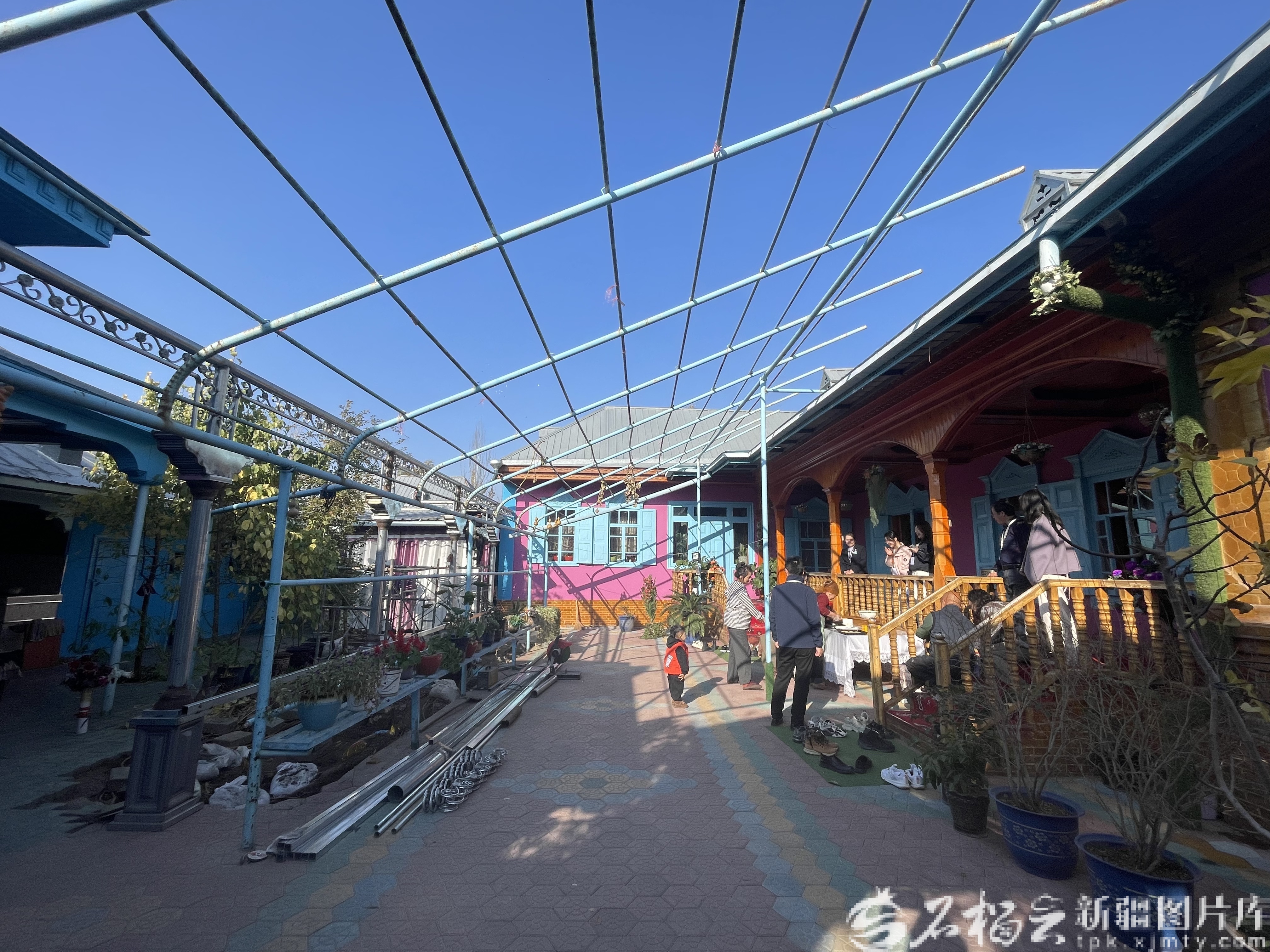 “等明年游客來,院子更寬敞了,大家可以坐在葡萄架下喝茶聊天,看表演?!卑⒉荒吮鹊男≡菏怯慰图以L點(diǎn),這幾年僅靠接待游客參觀民居、體驗(yàn)糕點(diǎn)制作等,一家人年收入就有十多萬元??紤]到小院之前焊接的葡萄架太窄且占地,他和妻子商量后決定拆舊拓寬,雖然材料加人工需要花費(fèi)3萬多元,但算算以后的經(jīng)濟(jì)賬,阿不乃比樂呵呵地說:“這錢花得值!”