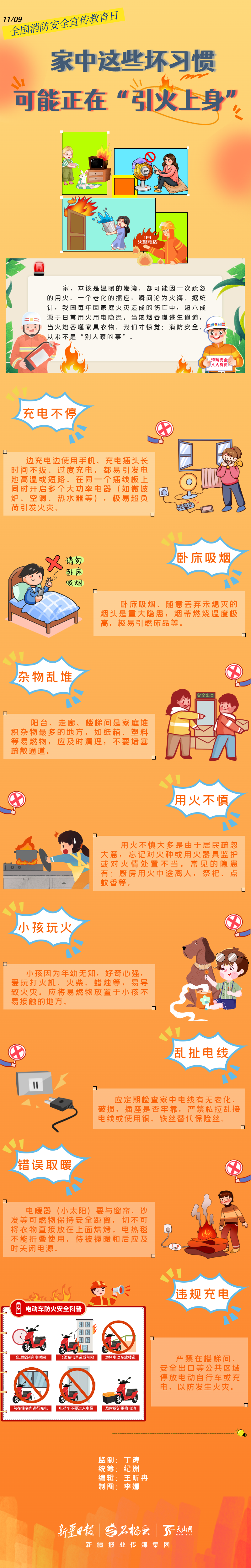 11月9日是全國消防安全宣傳教育日,今年的主題為“全民消防、生命至上——安全用火用電”。一起來看看這些壞習(xí)慣,在你家有沒有?