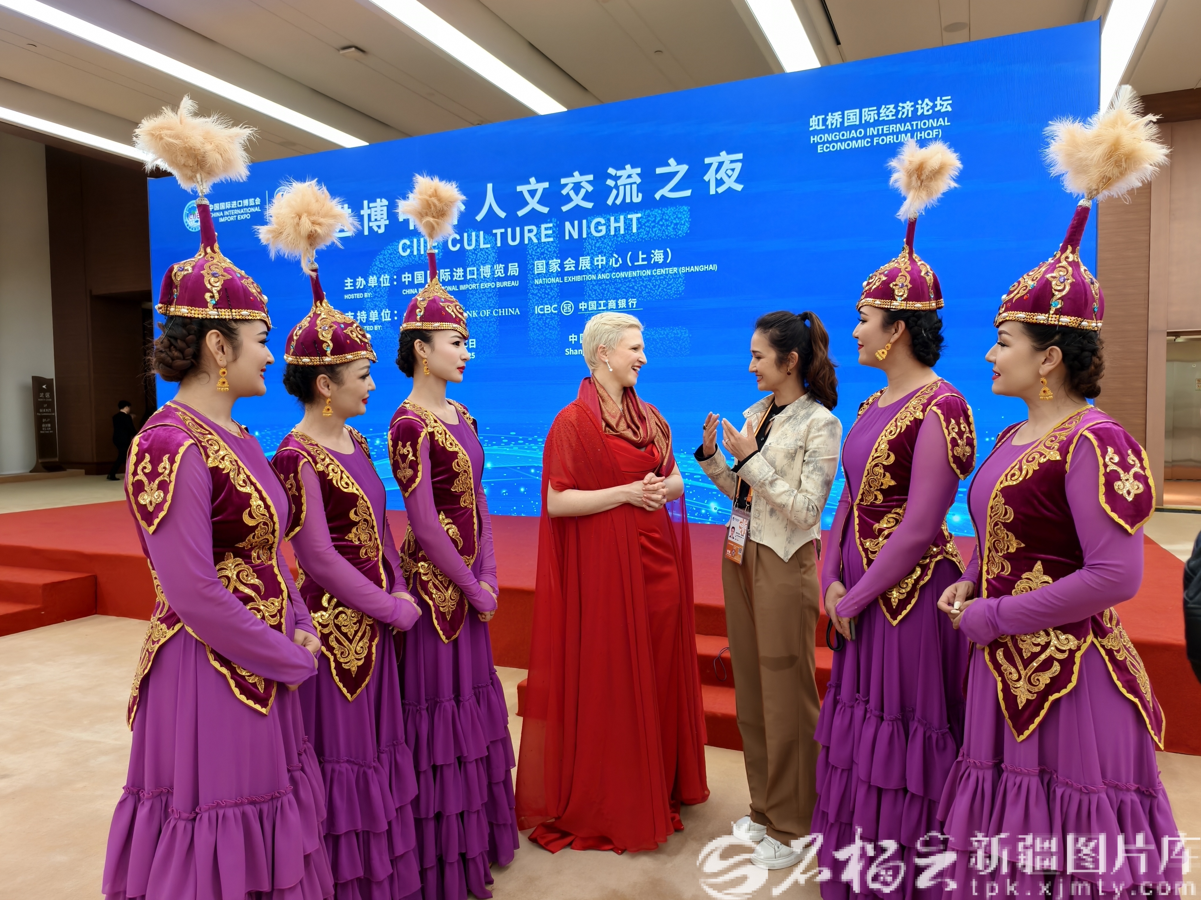 “整個排練和彩排過程都非常愉快,我們增進(jìn)了對彼此的了解,結(jié)下了深厚友誼?!卑⒖颂K地區(qū)塔里木歌舞劇團(tuán)舞蹈編導(dǎo)哈尼克孜·司依提說,除了合作節(jié)目,舞團(tuán)在新疆展廳還表演了融合薩瑪瓦爾舞、頂碗舞、盤子舞、手鼓等非遺元素的綜合性節(jié)目“非遺之光”,通過進(jìn)博會這個大平臺,把新疆的優(yōu)秀傳統(tǒng)文化展現(xiàn)給全世界的朋友。