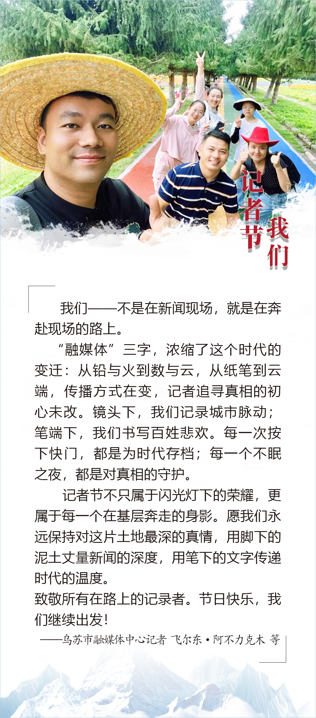 一周來,“疆小融”記者節(jié)互動活動得到了來自全疆各地融媒體中心記者編輯們的熱烈響應。在這個媒體人專屬的圈子里,一張張工作照訴說著獨特的職業(yè)故事,一段段真摯的感悟凝聚著新聞人的滾燙初心。今天,我們匯成這份特輯,回應每一次奔跑在新聞一線的熱愛與堅守,致敬每一束為追尋新聞而閃耀的微光。