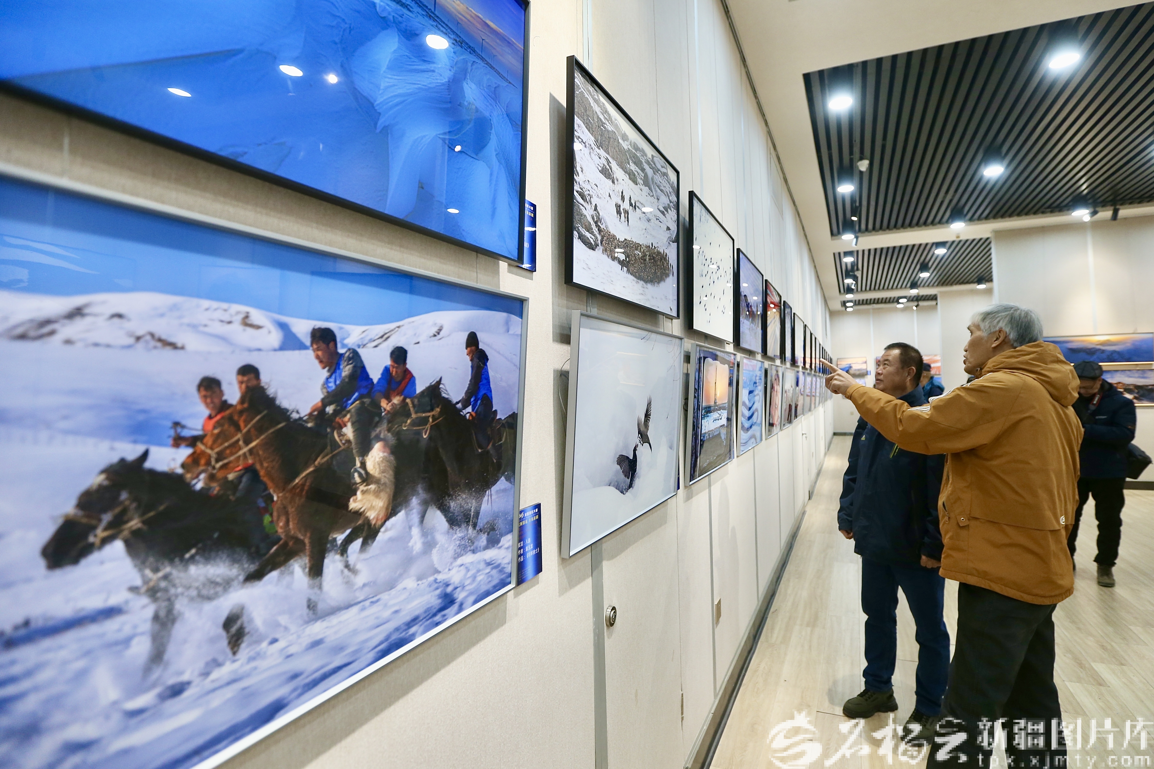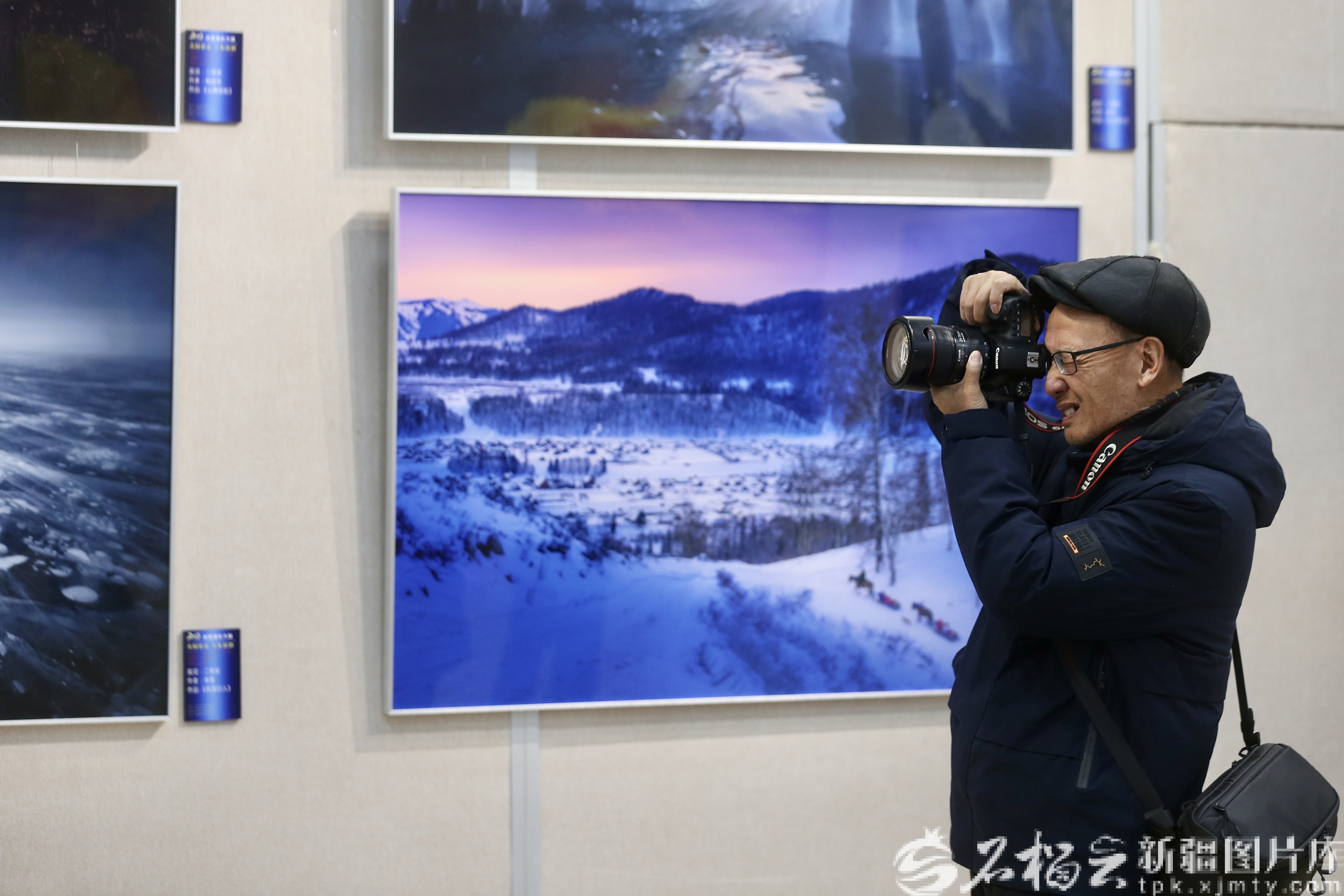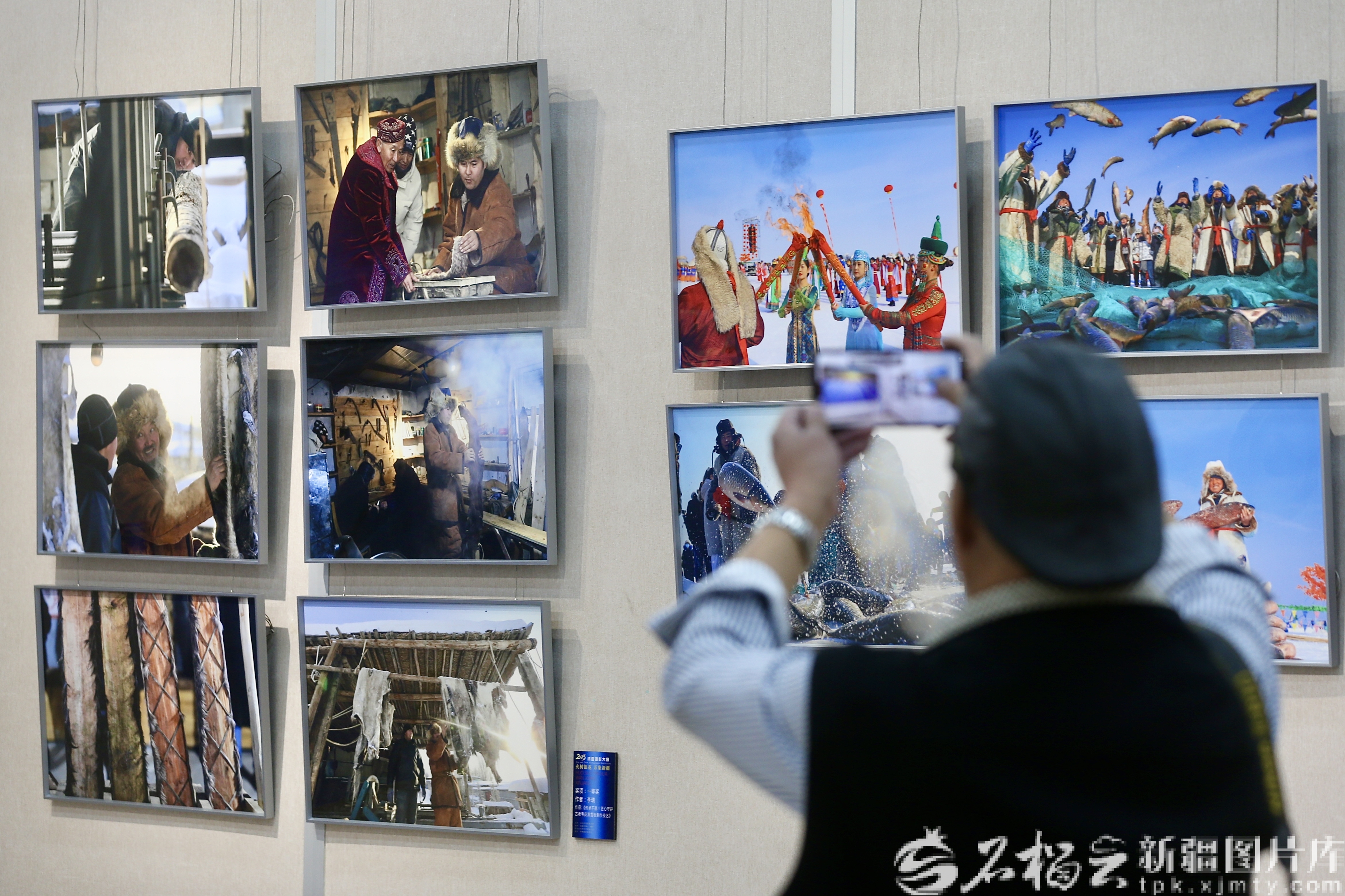 11月19日,觀眾在欣賞“火樹銀花 萬(wàn)象新疆”冰雪攝影展上展出的作品。