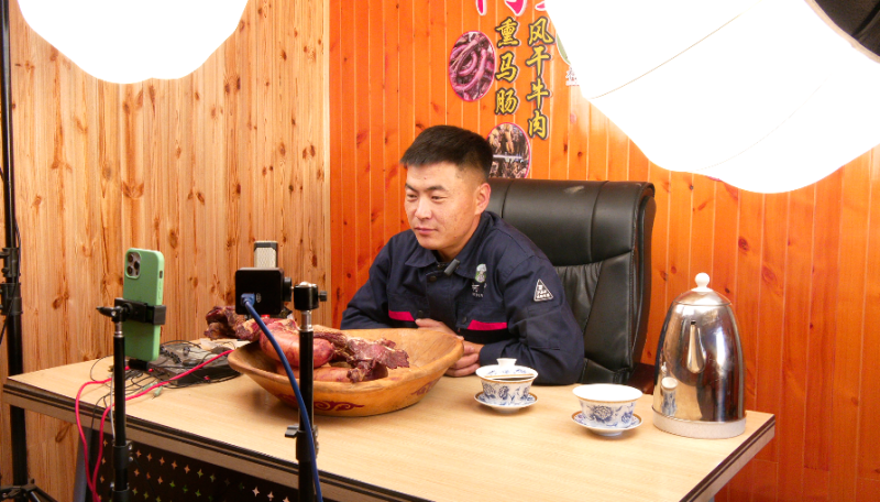 主播正在直播推介熏馬腸。來源:特克斯零距離