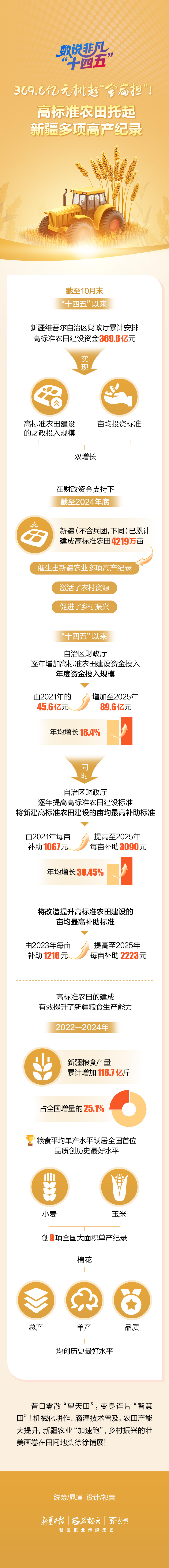 數(shù)說非凡“十四五”丨369.6億元挑起“金扁擔”!高標準農田托起新疆多項高產紀錄