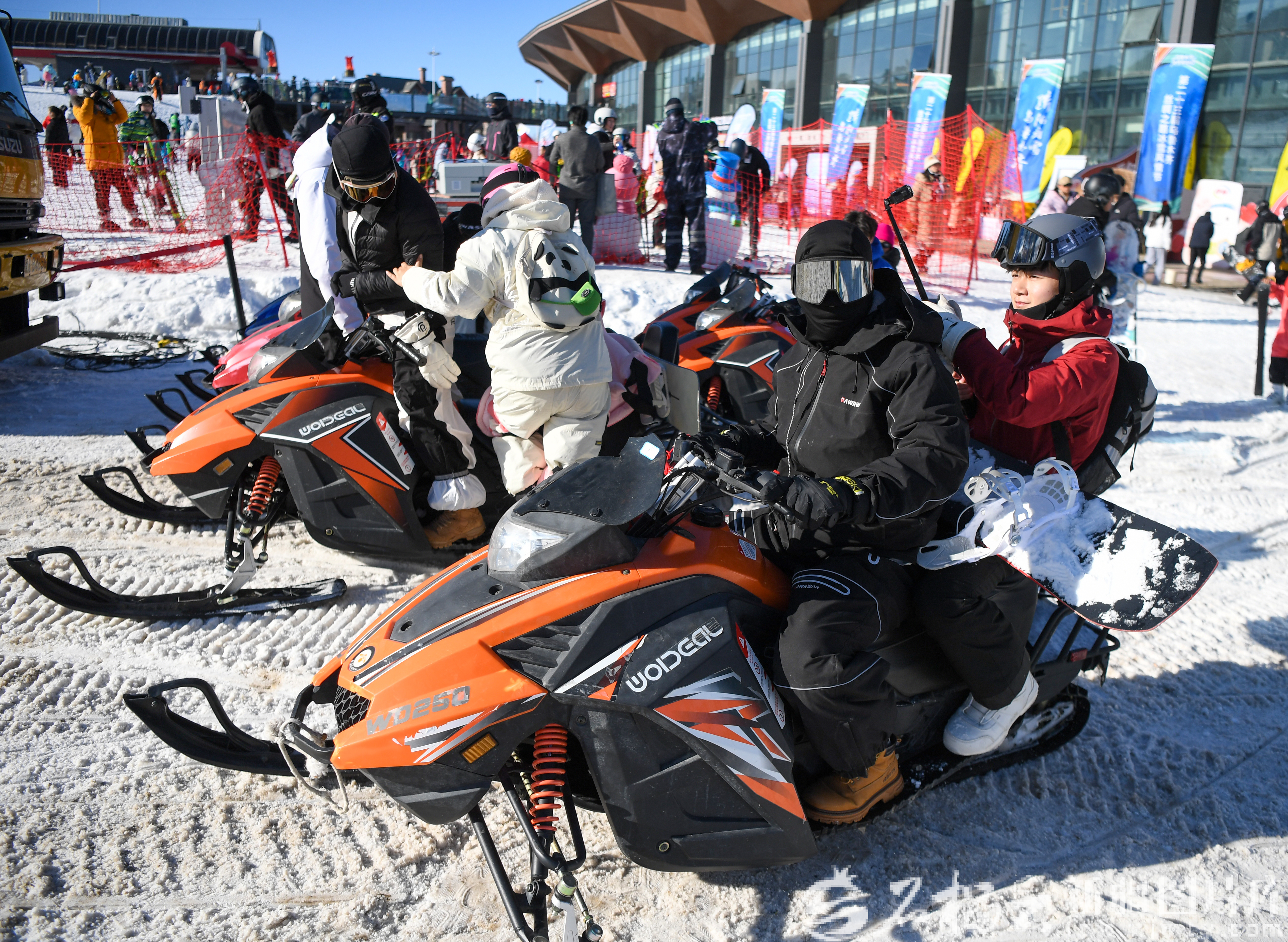 11月29日,以“驕陽看雪 烏魯木齊”為主題的第二十三屆烏魯木齊絲綢之路冰雪風(fēng)情節(jié)在絲綢之路山地度假區(qū)燃情啟幕。圖為游客乘坐雪地摩托上山游覽。