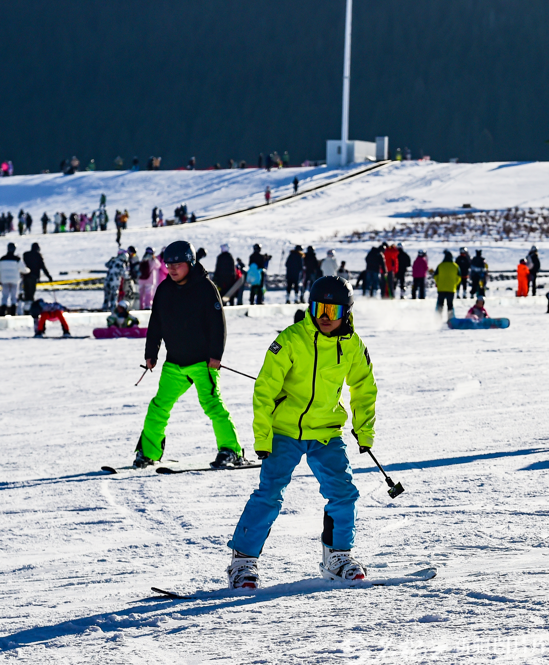 11月29日,以“驕陽看雪 烏魯木齊”為主題的第二十三屆烏魯木齊絲綢之路冰雪風(fēng)情節(jié)在絲綢之路山地度假區(qū)燃情啟幕。圖為游客在絲綢之路山地度假區(qū)滑雪場玩耍。