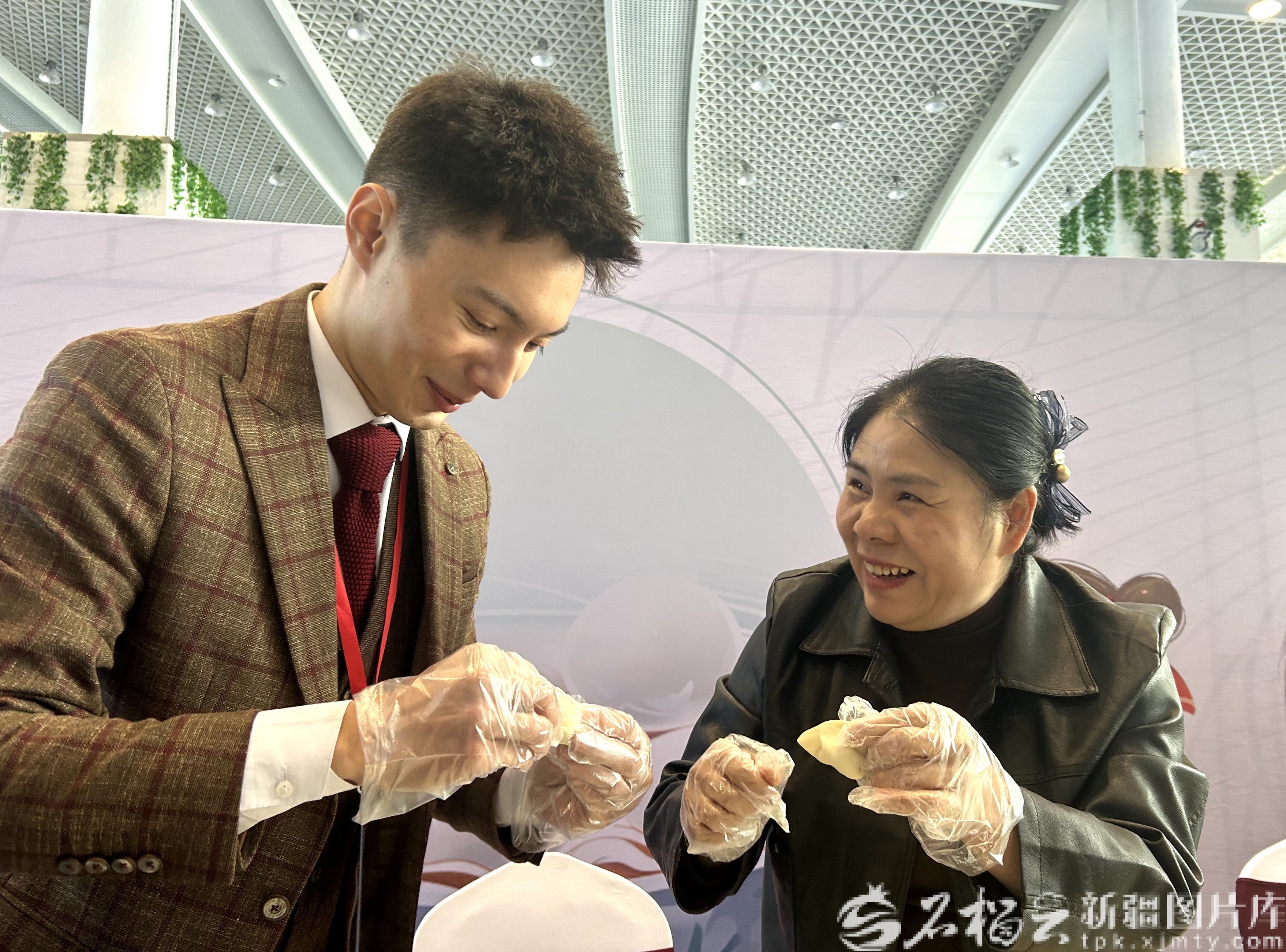 餃子是中國傳統(tǒng)美食,看著一個(gè)個(gè)酷似元寶的餃子,各國青年們表示想嘗嘗。在新疆大學(xué)留學(xué)的哈薩克斯坦青年Jony把薄薄的餃子皮握在掌心之中,加上適量的餃子餡,在志愿者的幫助下包出一個(gè)合格的餃子:“我在學(xué)校食堂吃過餃子,這是中國最好吃的食物之一。今天能學(xué)習(xí)包餃子,特別高興?!?/p>