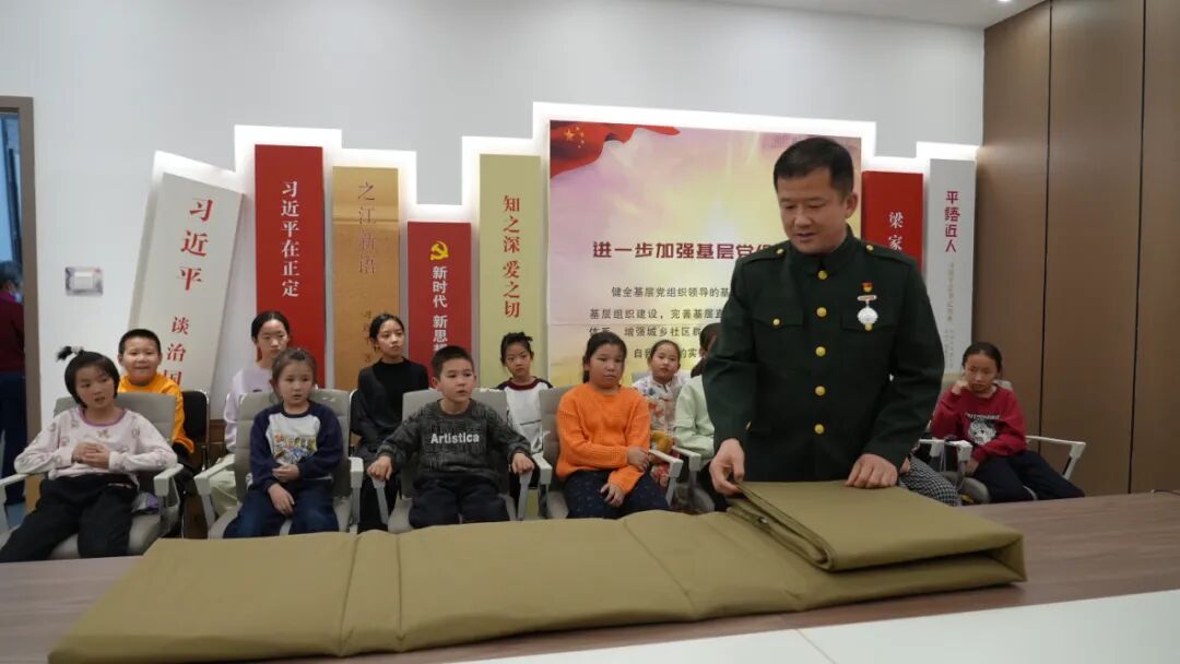 在富蘊(yùn)縣庫(kù)額爾齊斯鎮(zhèn)文化西路社區(qū),退役軍人耐心示范“豆腐塊”被子的折疊技巧。沙吾列·賽力塔那提攝