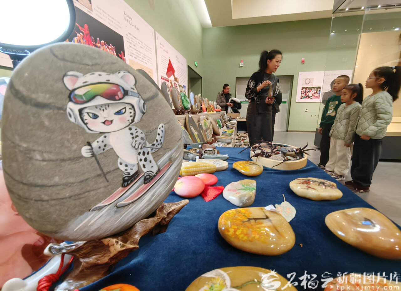 12月1日,在烏魯木齊市博物館,一幅幅精美的石頭畫吸引了孩子們駐足觀賞。天山網(wǎng)-新疆日?qǐng)?bào)記者李雄心攝