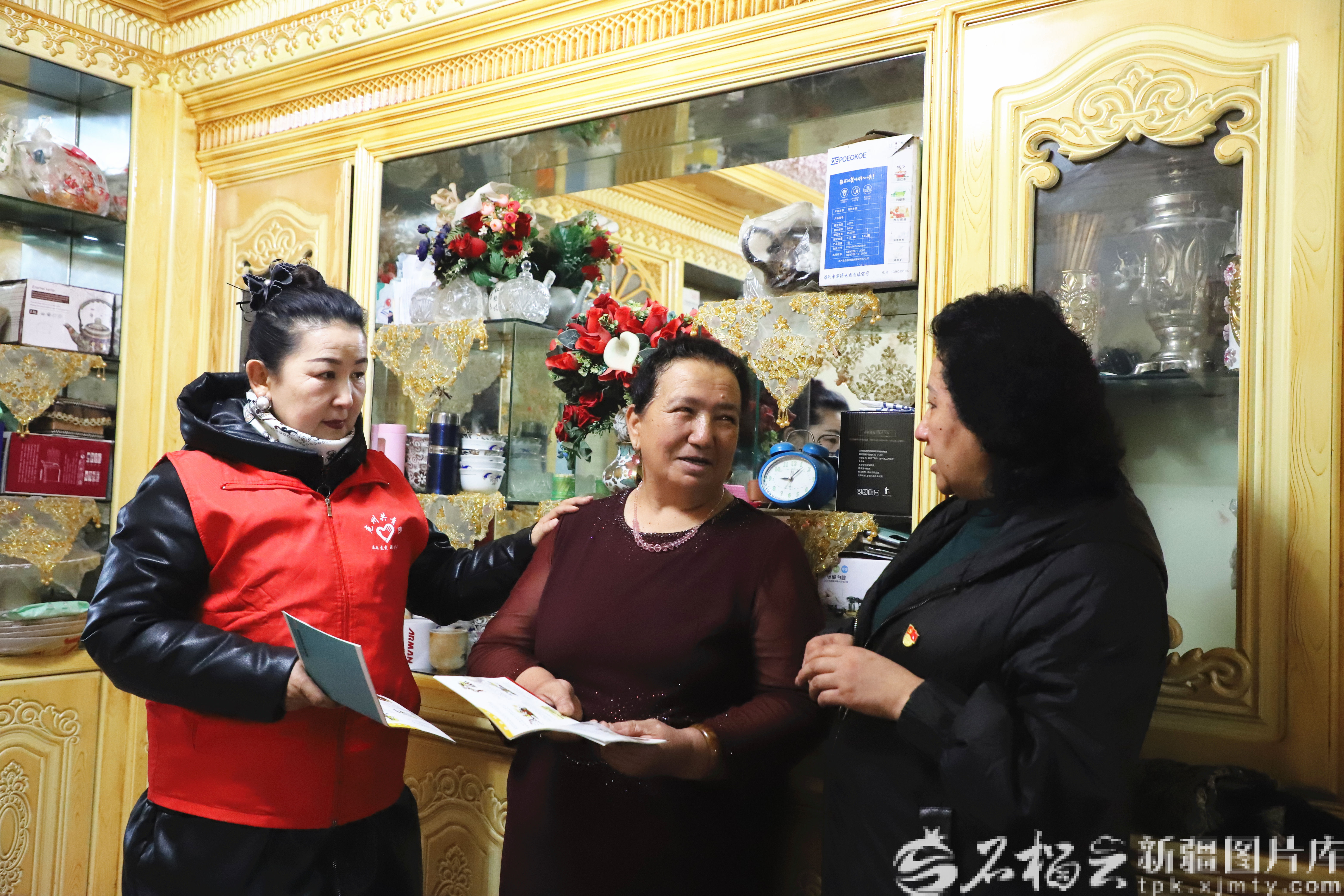 12月5日,在阿合奇縣阿合奇鎮(zhèn)和平路社區(qū),黨員干部正在為轄區(qū)群眾普及防震減災(zāi)知識(shí)。古麗加馬力·艾薩 攝