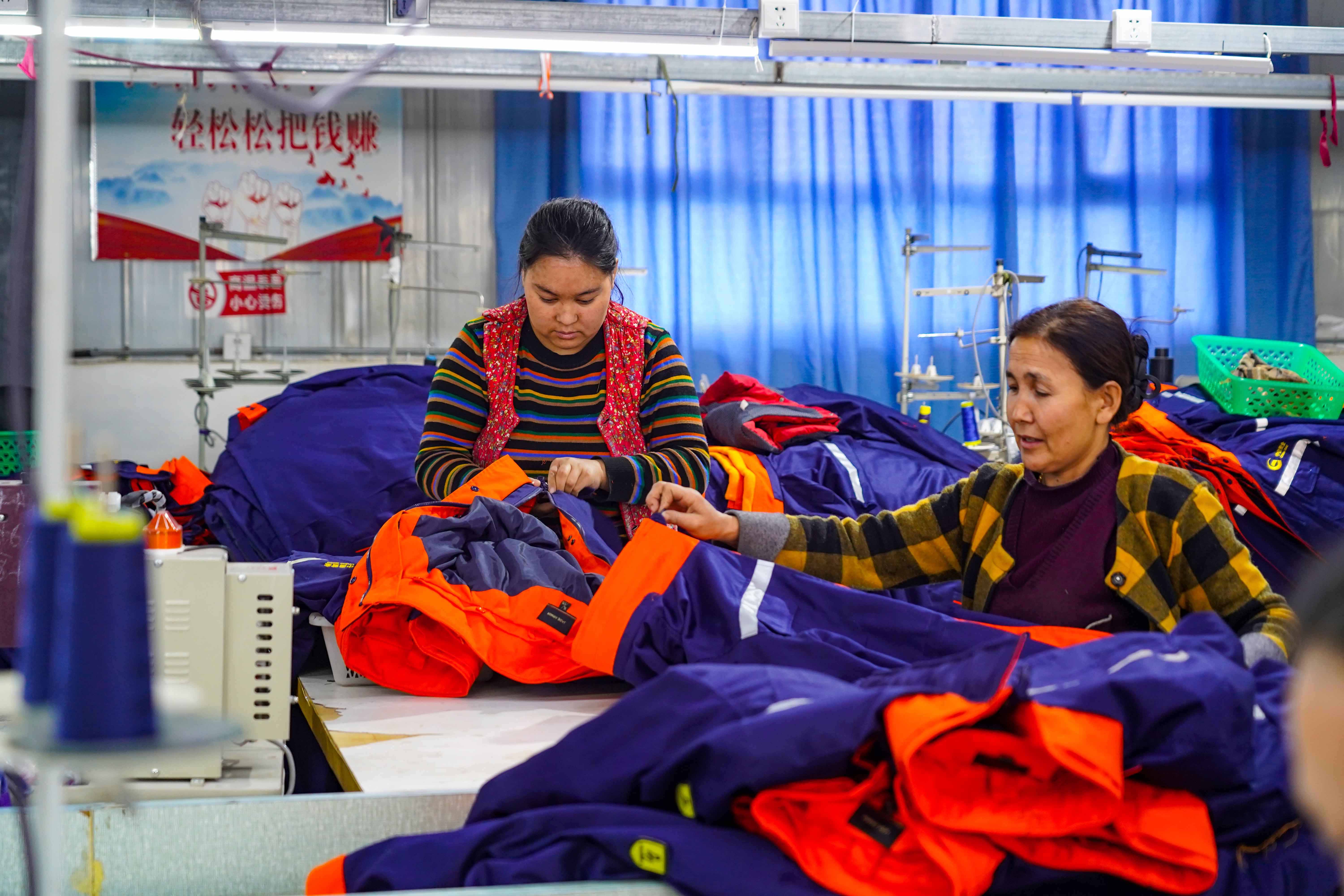 12月8日,和田市古江巴格鄉(xiāng)賽克散村服裝加工生產(chǎn)車間里機(jī)聲隆隆,一派繁忙景象,工人們正全力趕制一批服裝訂單。