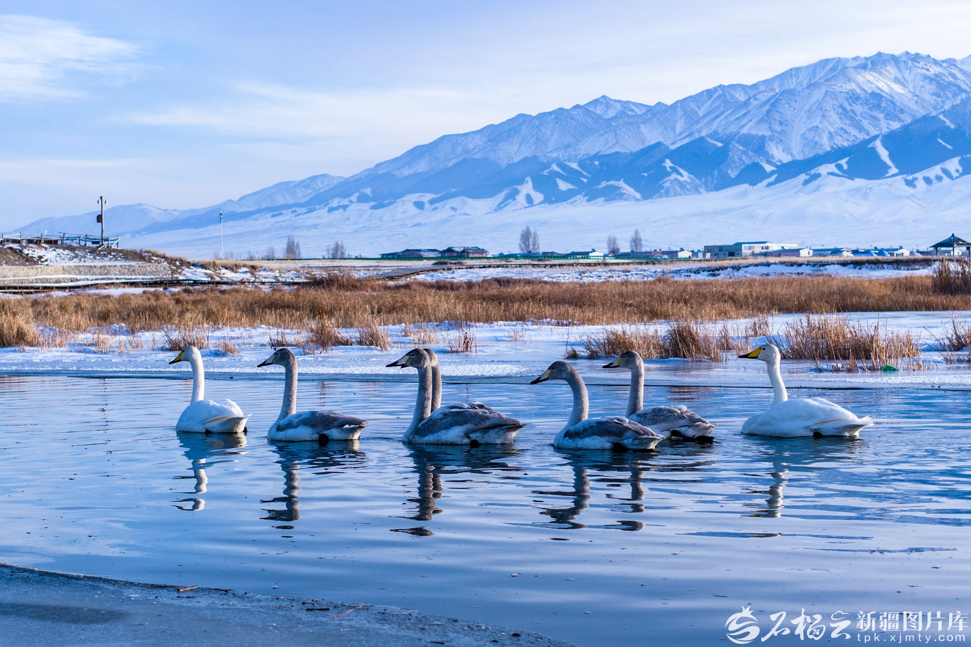 12月17日,巴里坤哈薩克自治縣高家湖濕地景區(qū),天鵝在水中游弋。