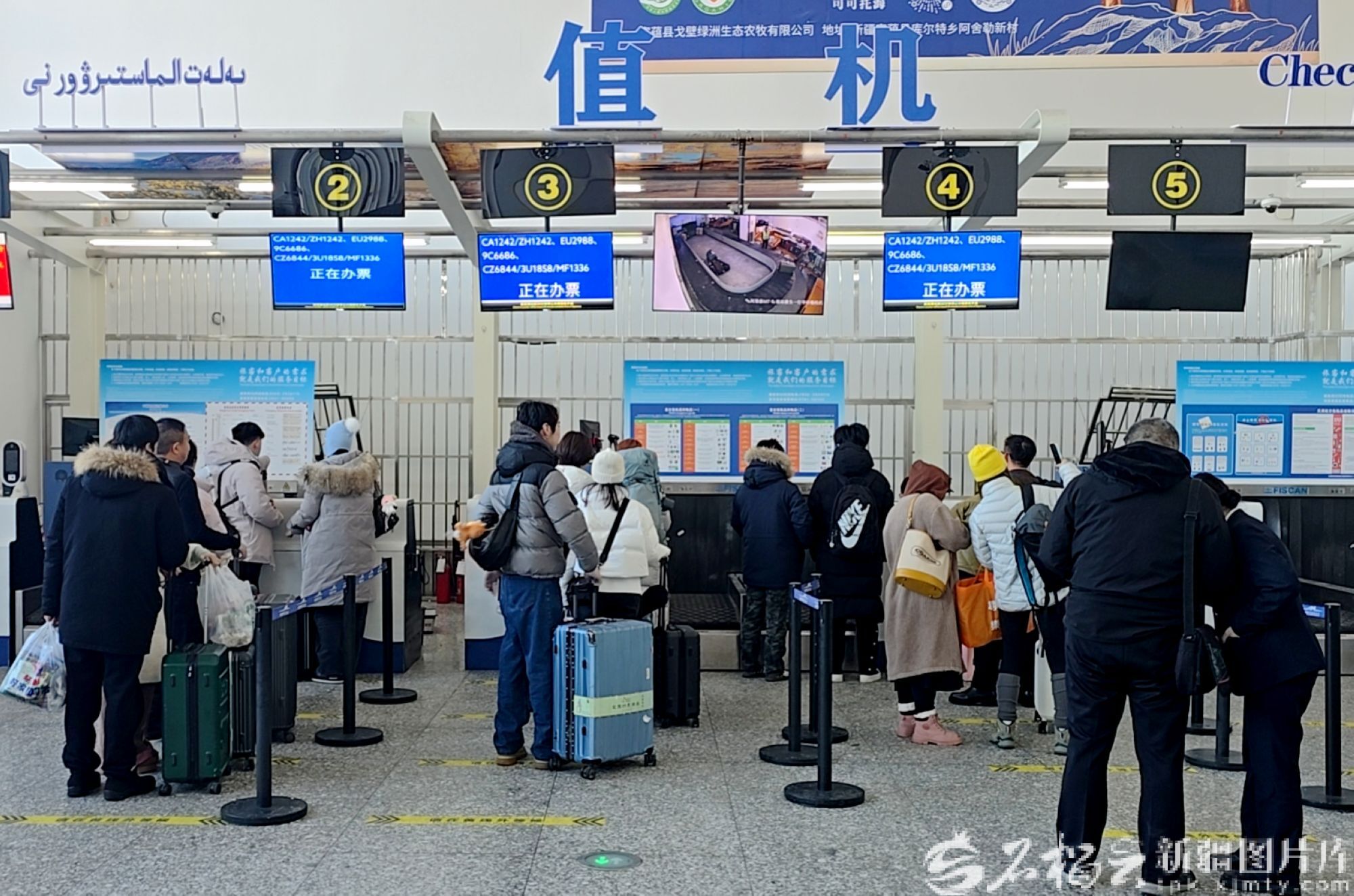 12月24日,旅客在阿勒泰雪都機場辦理值機手續(xù)。曲孟偉 攝