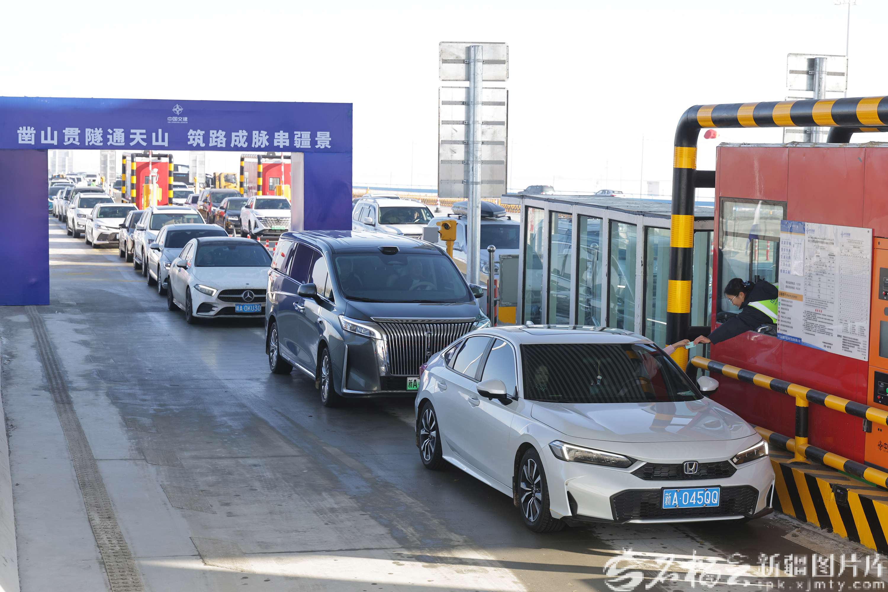 12月26日,G0711烏魯木齊至尉犁高速公路全線通車。圖為車輛在烏尉高速烏魯木齊南收費(fèi)站排隊(duì)過站。天山網(wǎng)-新疆日報(bào)記者 崔志堅(jiān)攝