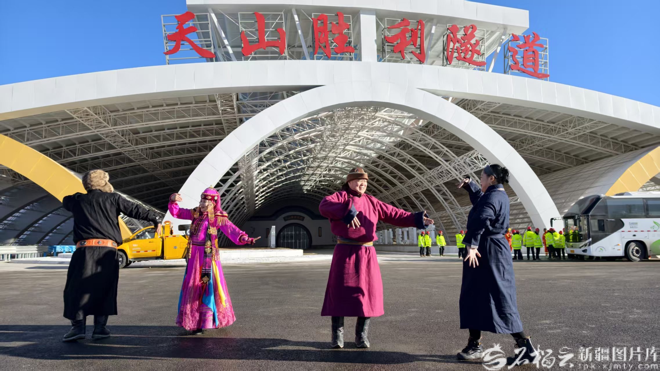 12月26日,當(dāng)?shù)厝罕娫跒跷靖咚俟诽焐絼倮淼揽谄鹞?,歡慶全線通車。天山網(wǎng)-新疆日報(bào)記者 湯永攝