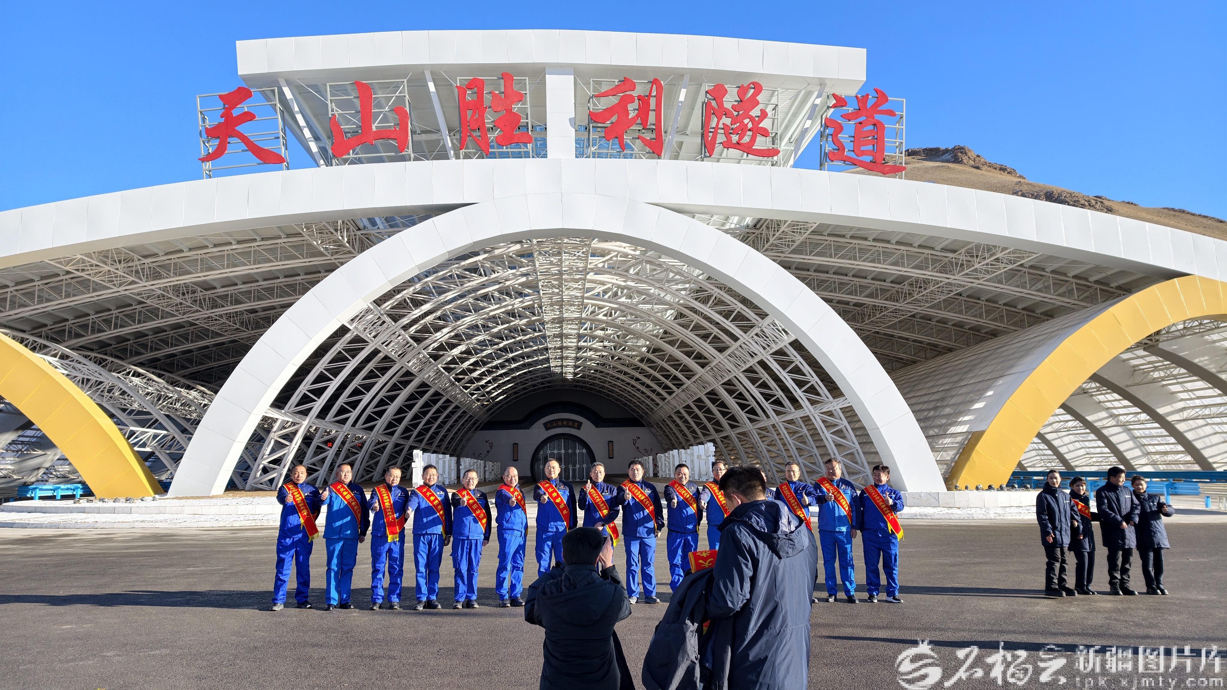 12月26日,烏尉高速公路建設(shè)者們在天山勝利隧道口合影留念。天山網(wǎng)-新疆日報(bào)記者 湯永攝