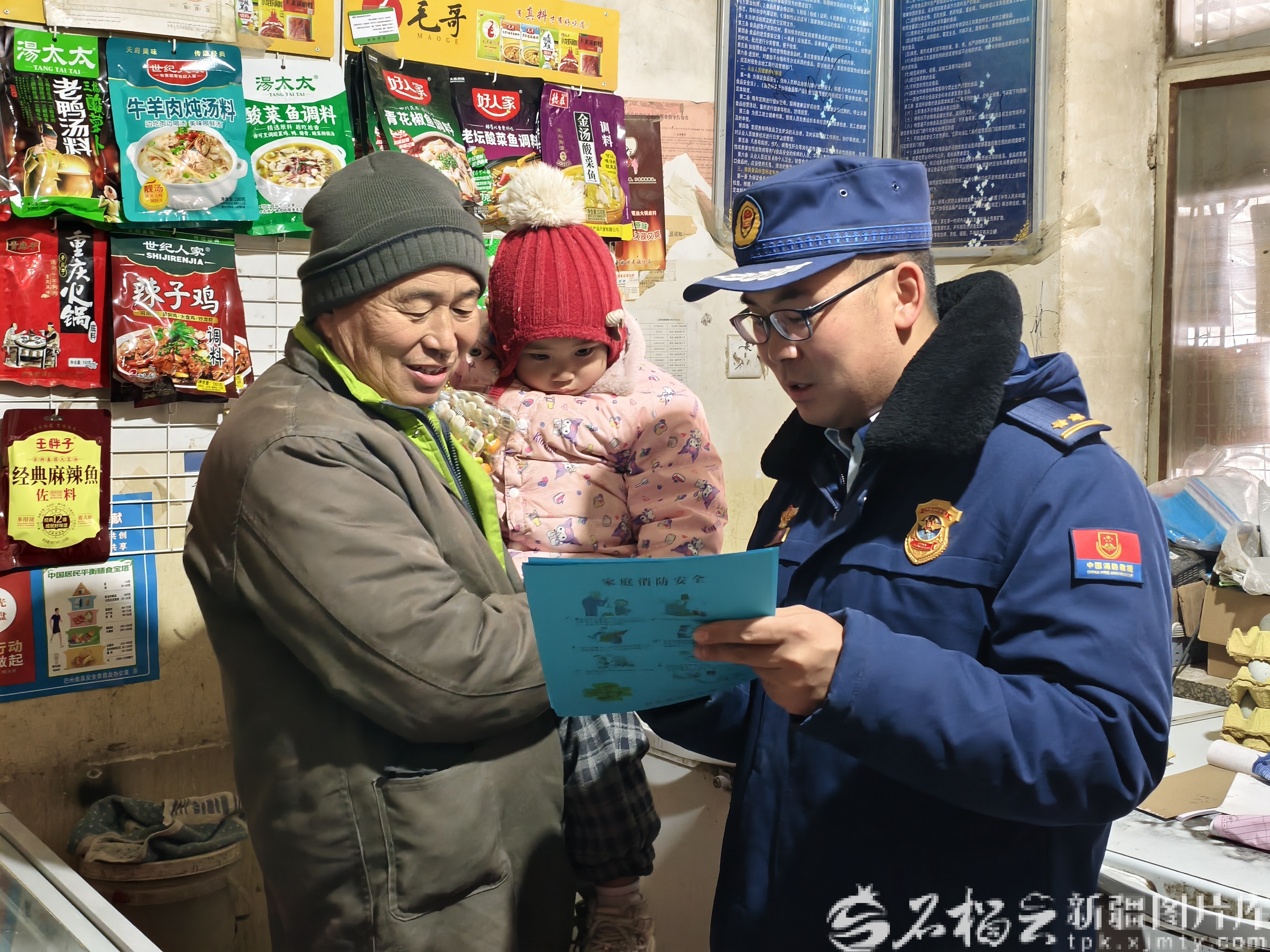 近日,且末縣消防救援支隊消防監(jiān)督員走進商鋪開展消防安全宣傳活動。周杰攝