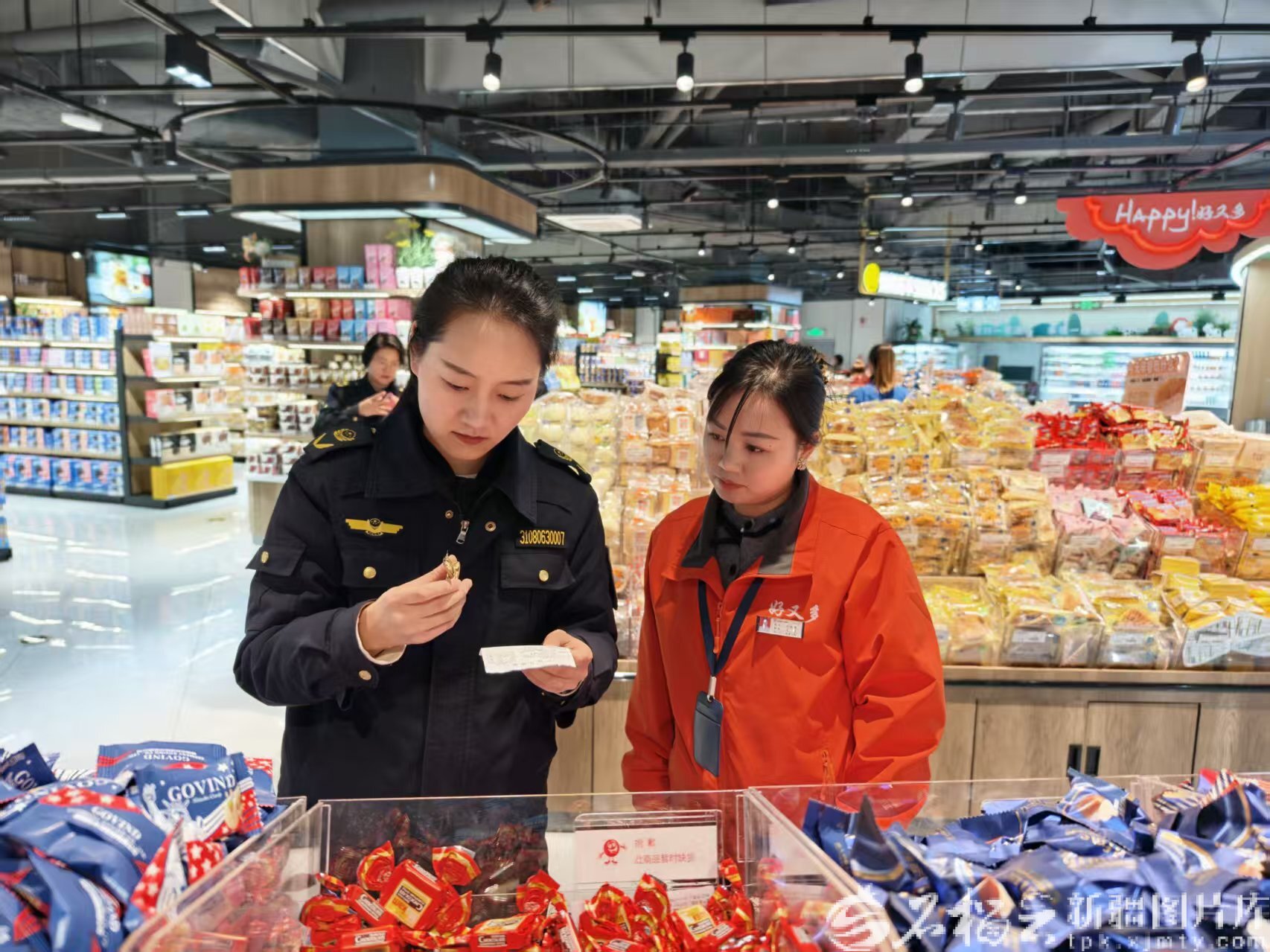 12月31日,阿克蘇市市場(chǎng)監(jiān)督管理局執(zhí)法人員在好又多超市開(kāi)展執(zhí)法檢查。陸雪婷攝