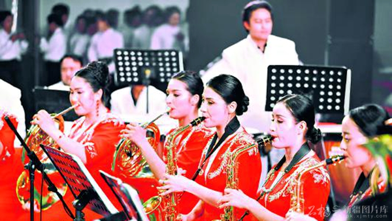 2025年12月31日晚,演員在和田地區(qū)洛浦縣舉辦的跨年音樂晚會(huì)上演奏《保衛(wèi)黃河》。 買買提艾力·艾尼瓦爾攝