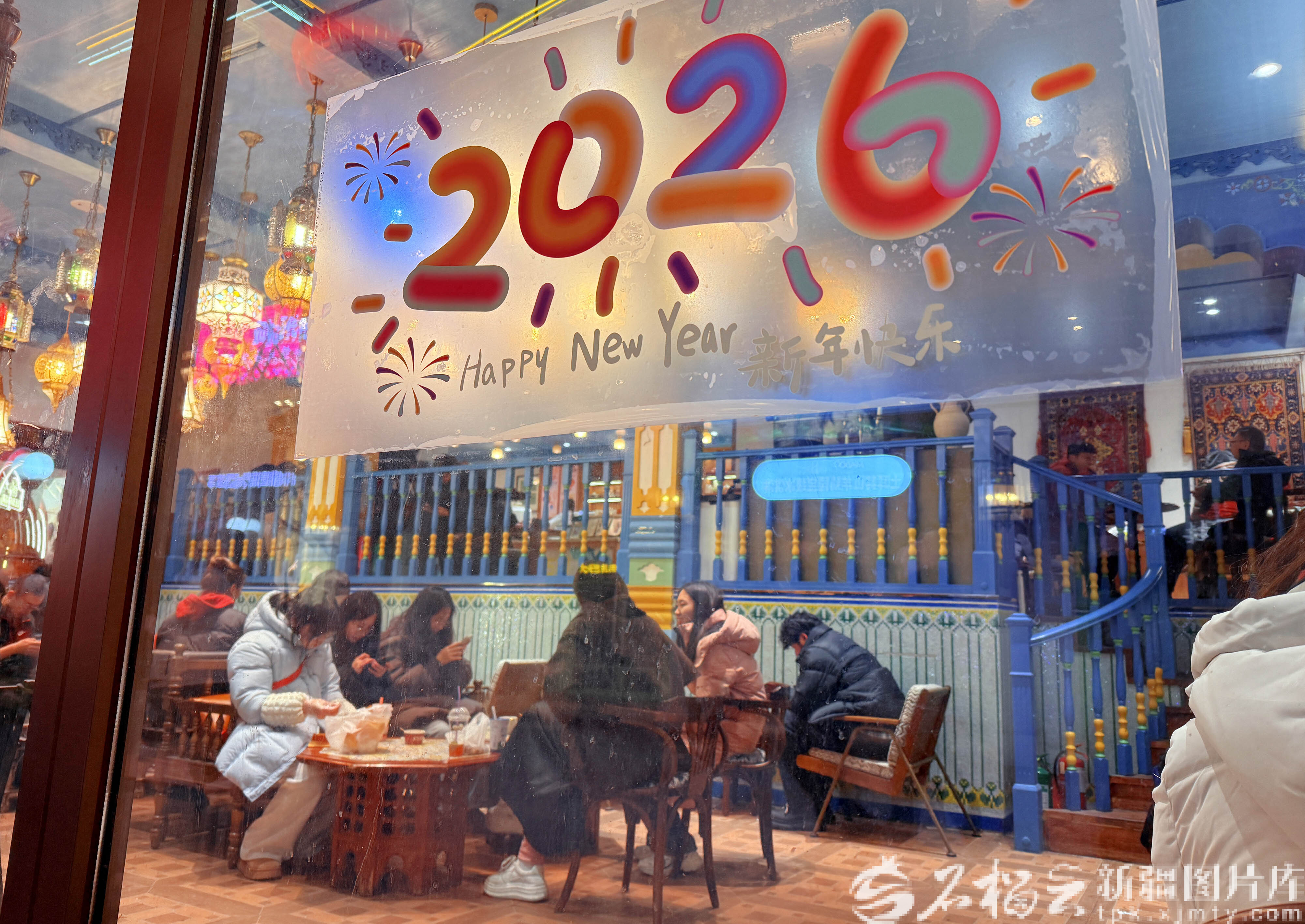 1月1日,游客在烏魯木齊大巴扎步行街二期疆來城石榴花巷的一家餐飲店品嘗美食,樂享元旦假期美好時光。