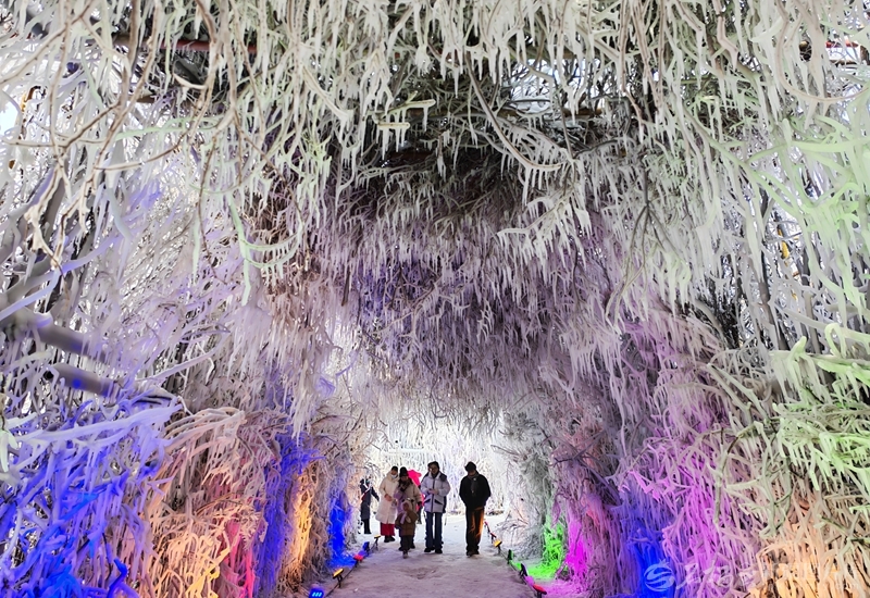 1月1日,市民在烏魯木齊市水磨溝區(qū)天山明月冰雪城冰封水簾洞里游玩。天山網(wǎng)-新疆日報(bào)記者秦梅花攝