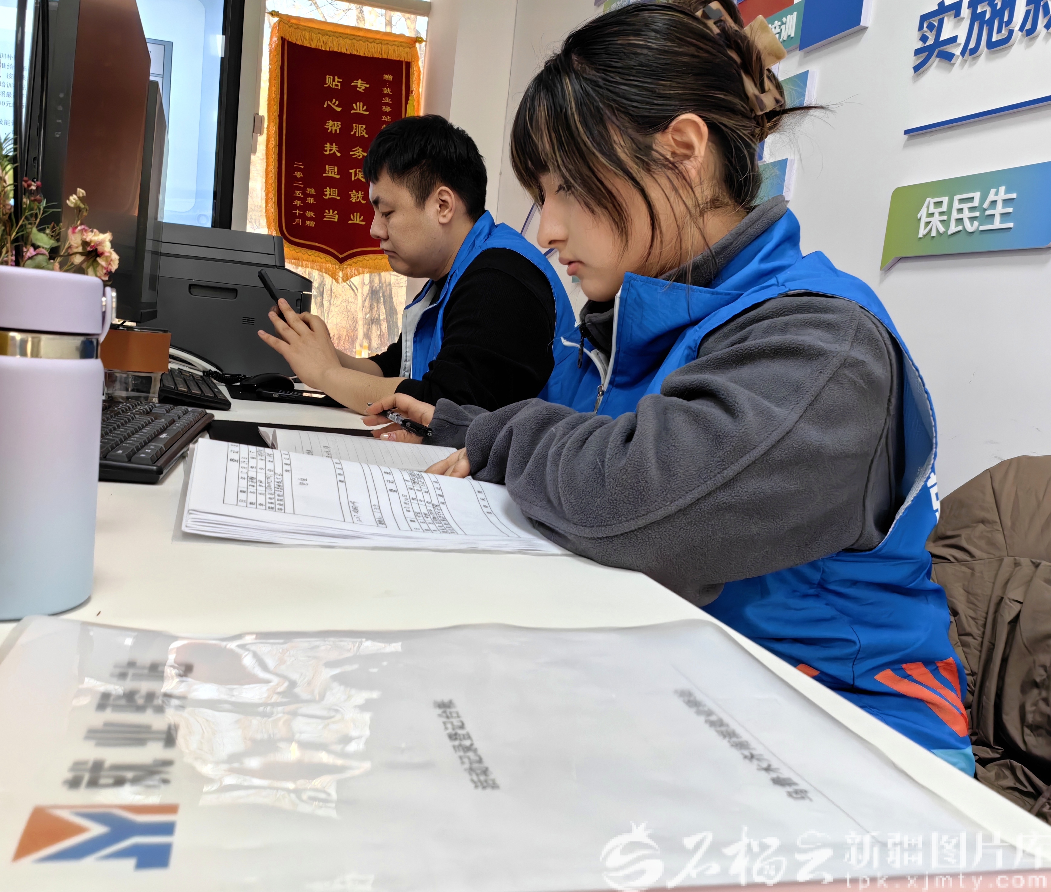 1月6日, 在水磨溝區(qū)“2026屆高校畢業(yè)生”線上招聘會(huì)現(xiàn)場(chǎng),南湖廣場(chǎng)就業(yè)驛站工作人員在登記求職人員的信息。