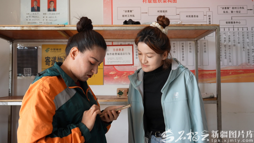 2025年11月9日,奇臺縣坎爾孜鄉(xiāng)郵政快遞投遞員核對取件人信息。王正佳攝