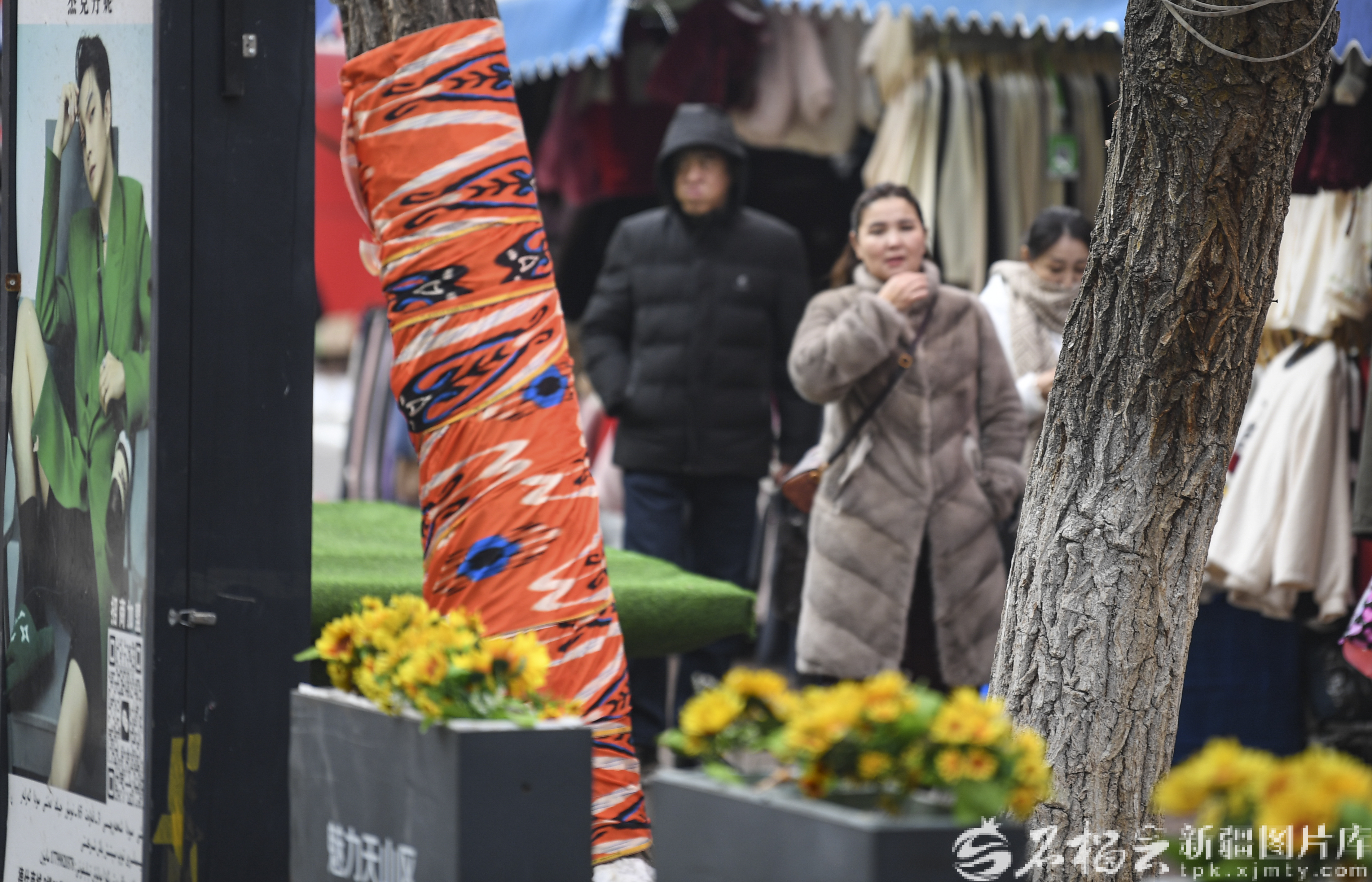 1月8日,漫步街區(qū),“西門(mén)你好”“我愛(ài)烏魯木齊”等幕布融入絢麗艾德萊斯紋樣,道路兩側(cè)布藝景觀輕盈點(diǎn)綴,連樹(shù)木都披上流光溢彩的艾德萊斯綢,宛如行走在流動(dòng)的畫(huà)卷中,匠心設(shè)計(jì)盡顯地域文化魅力。