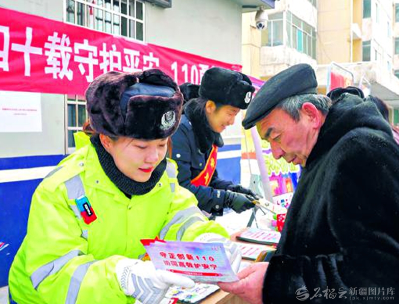 1月10日,瑪納斯縣公安局民警在縣中心農(nóng)貿(mào)市場(chǎng)給群眾和商戶普及法律法規(guī)知識(shí)。 丁慧琴攝