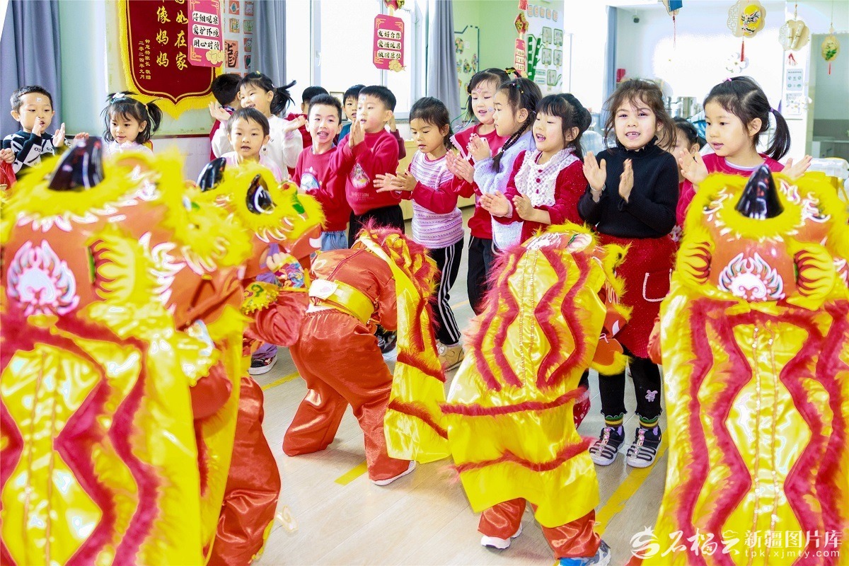 1月15日,孩子們在開心地表演舞獅子。當(dāng)日,烏魯木齊市沙依巴克區(qū)八一街道古城南社區(qū)組織轄區(qū)幼兒園的孩子們跳獅子舞、做手工等,學(xué)習(xí)中華優(yōu)秀傳統(tǒng)文化,樂享冬日時光。 孫振嵩攝