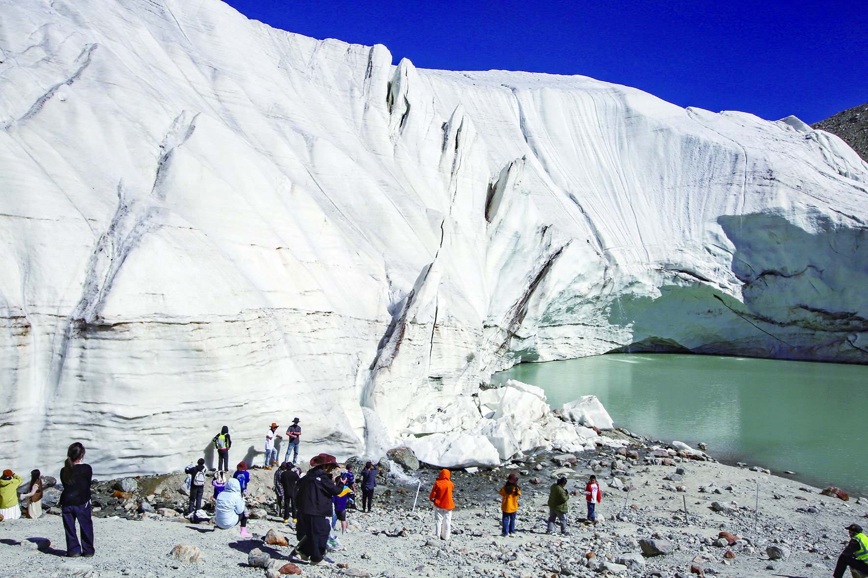 游客在慕士塔格冰川公園近距離感受冰川魅力。蔡增樂/攝