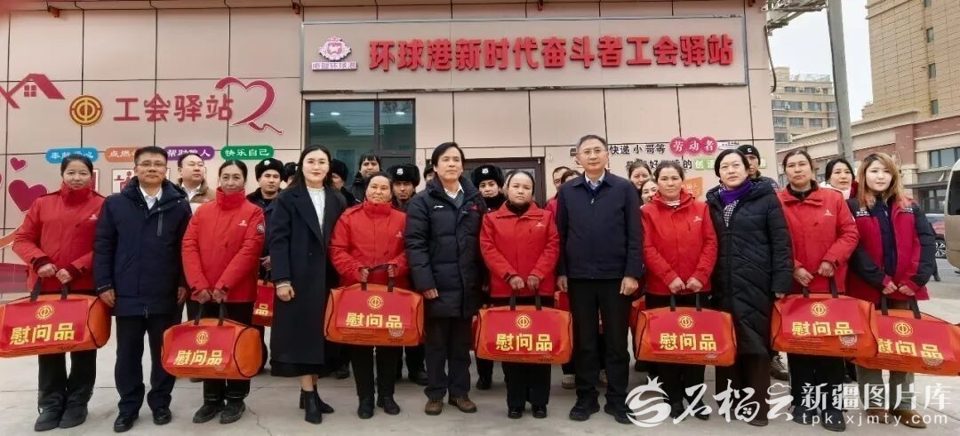 全國總工會慰問團(tuán)在喀什市環(huán)球港新時代奮斗者工會驛站慰問調(diào)研。自治區(qū)總工會供圖