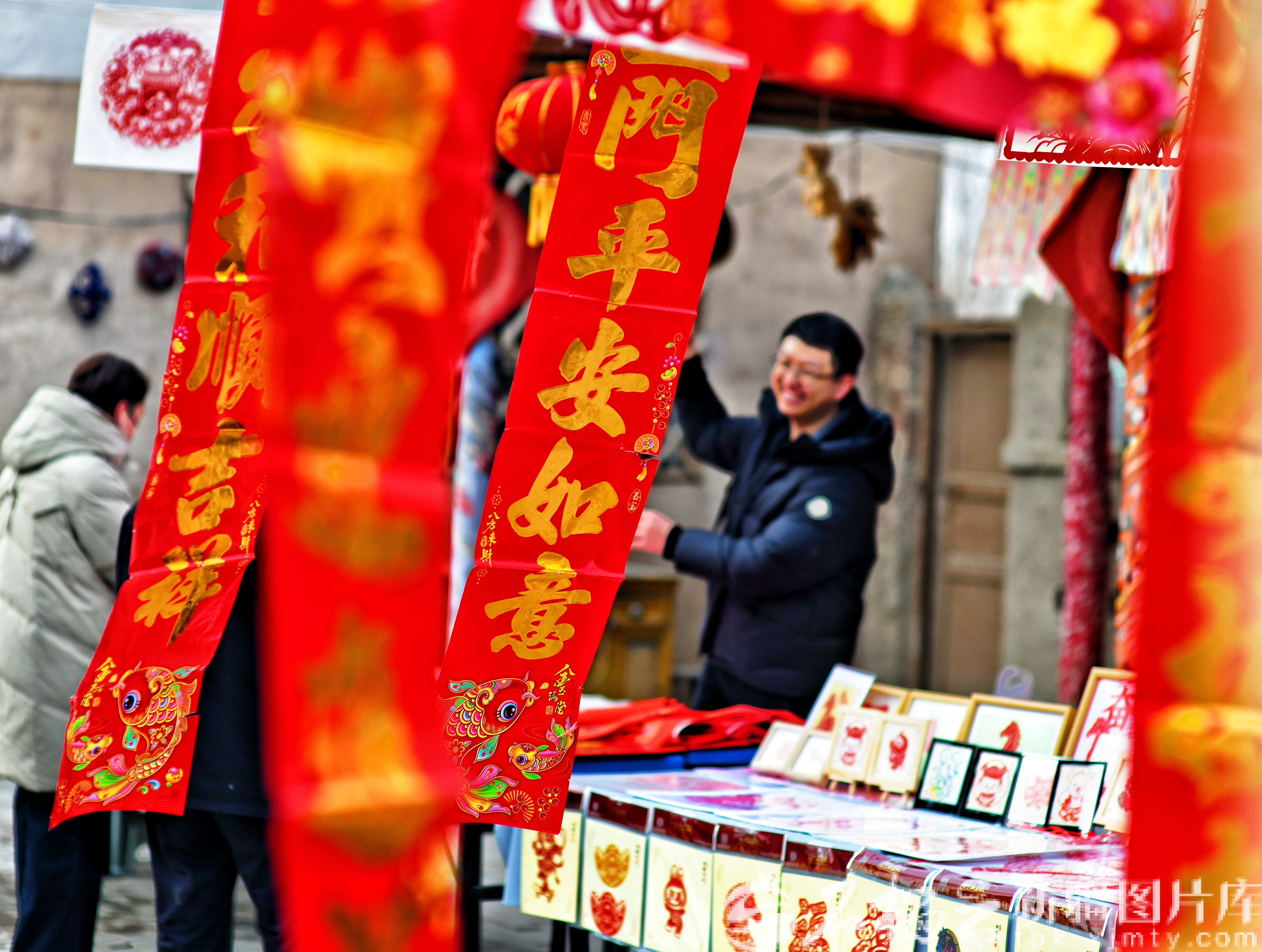 2月7日,書法愛好者給群眾寫春聯(lián)。
