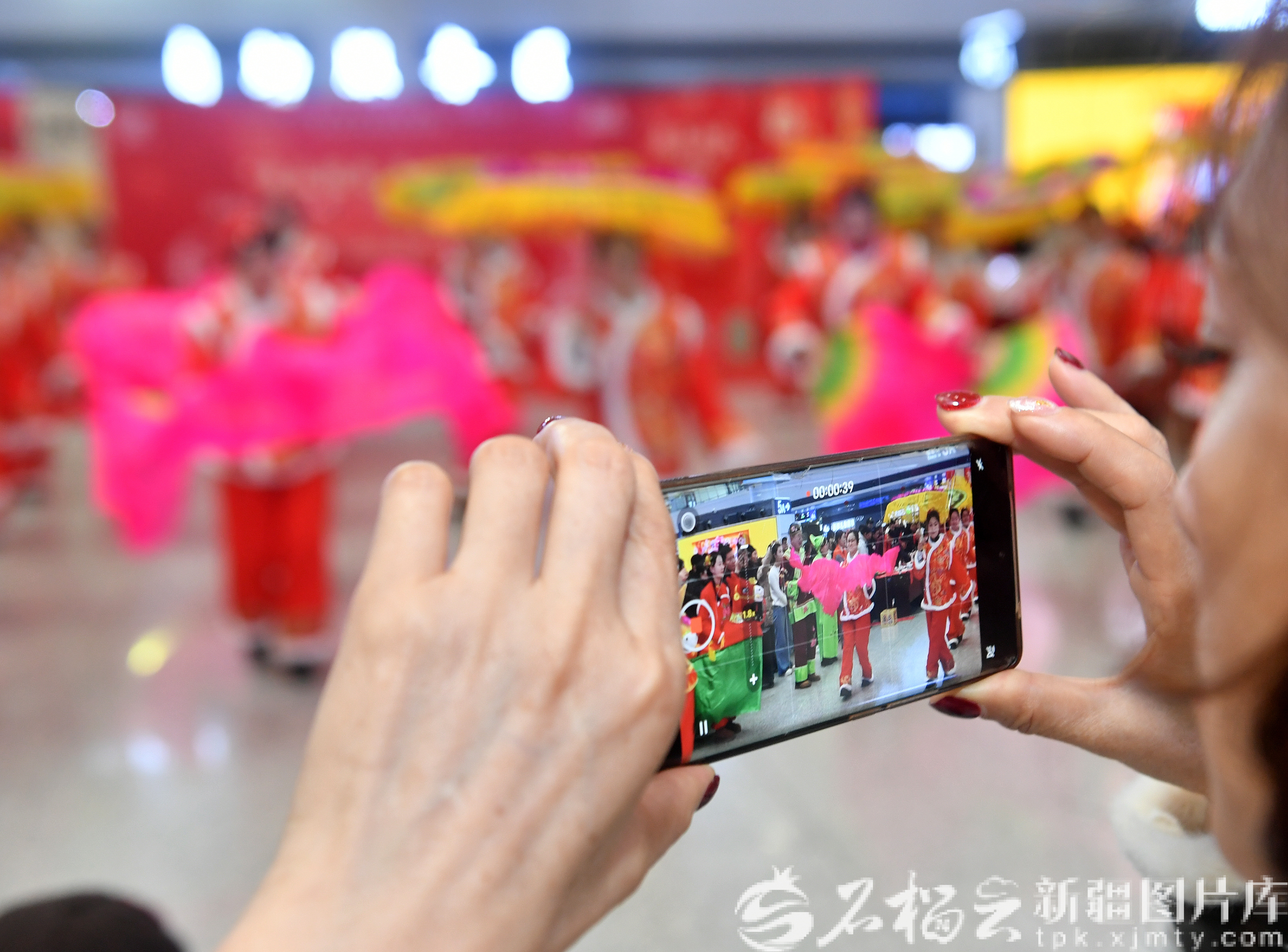 2月10日,工作人員與旅客在現(xiàn)場共同跳舞。