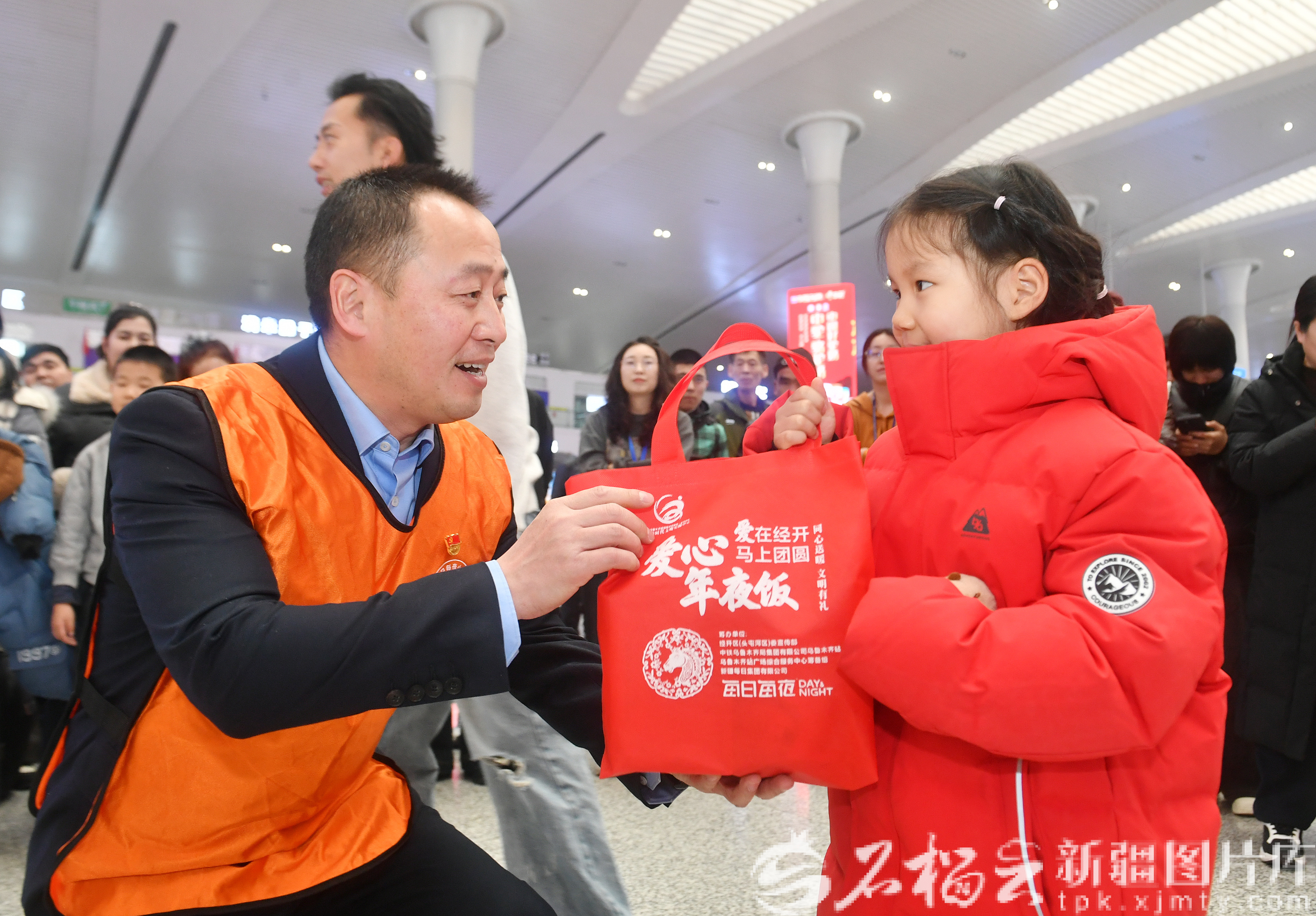 天山網(wǎng)-新疆日報訊(記者鄒懿攝影報道)“很開心能在候車大廳看到精彩的社火表演、送春聯(lián),還拿到了愛心年夜飯禮包,感謝大家?!?月10日,旅客王桂花在烏魯木齊站候車大廳提著愛心年夜飯禮包,開心地說。