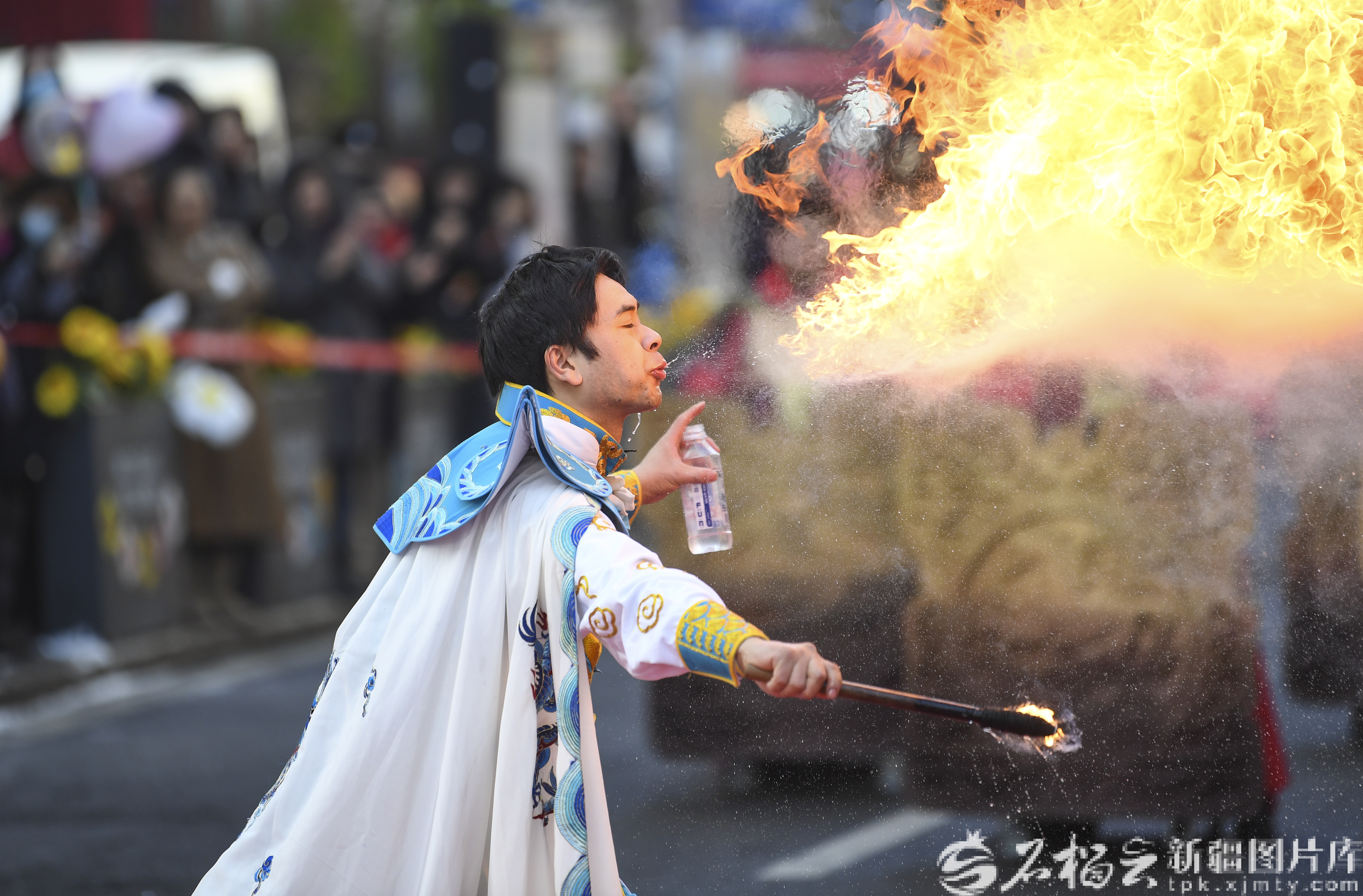 2月14日,演員在表演噴火。天山網(wǎng)-新疆日報記者 湯永攝