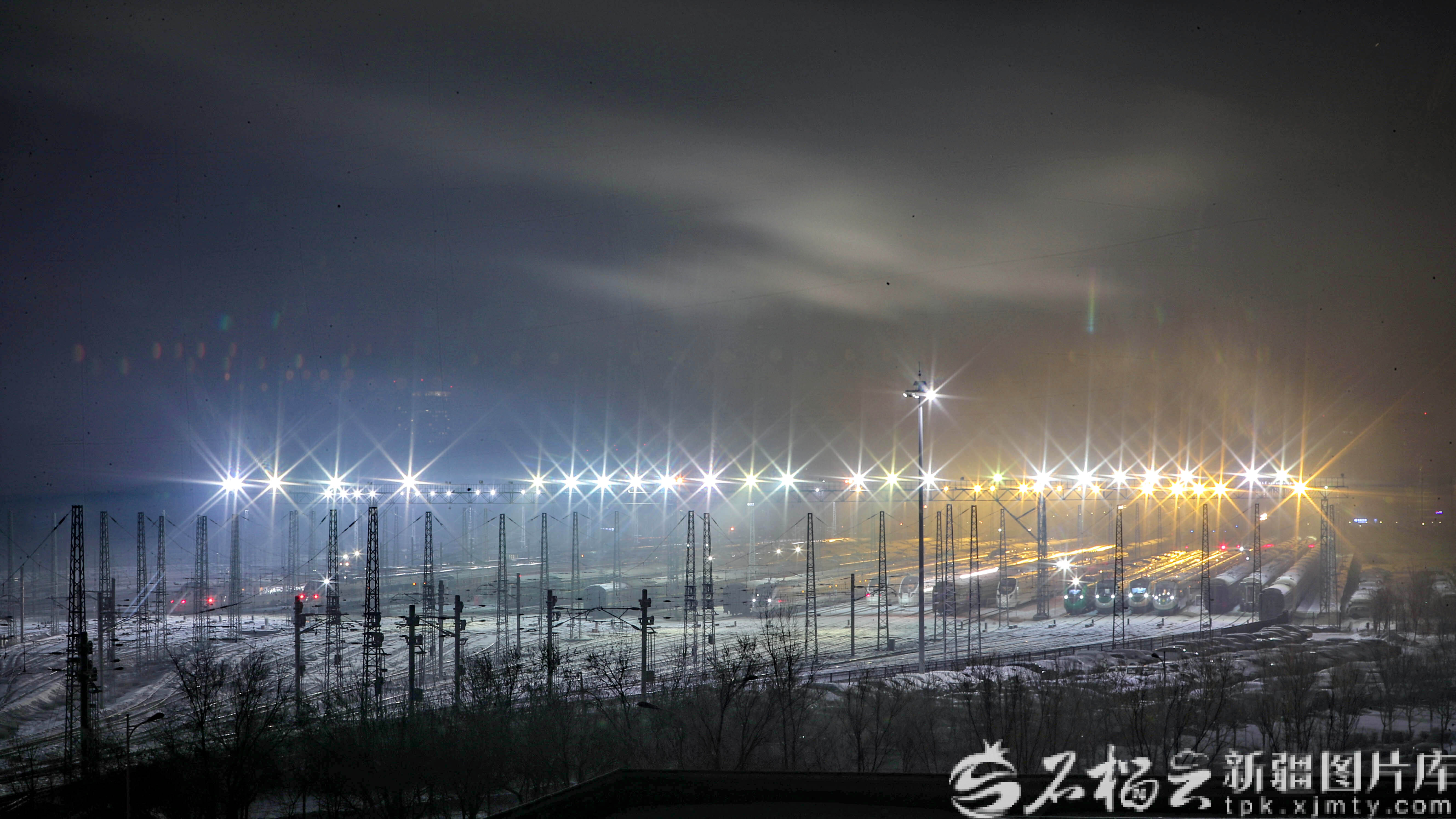 2月5日,中國(guó)鐵路烏魯木齊局集團(tuán)有限公司烏魯木齊車(chē)輛段動(dòng)車(chē)片區(qū)存車(chē)場(chǎng)燈火通明一列列動(dòng)車(chē)組列車(chē)整裝待發(fā)。