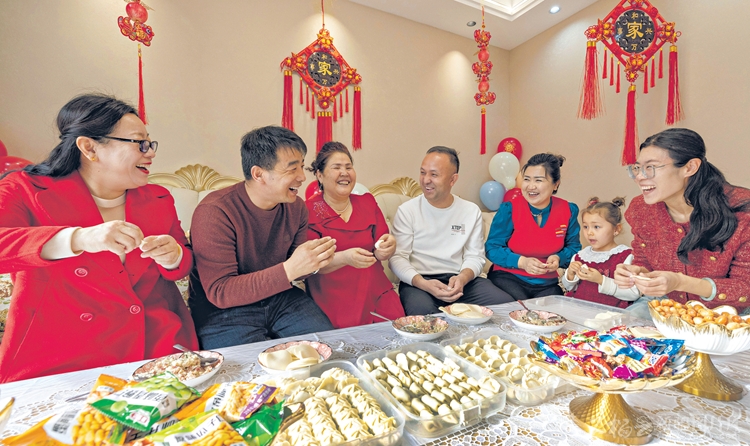 2月14日,庫車市人民醫(yī)院駐伊西哈拉鎮(zhèn)庫木艾日克村工作隊隊員和村民包餃子、話團結(jié),喜迎新春佳節(jié)。袁歡歡 攝