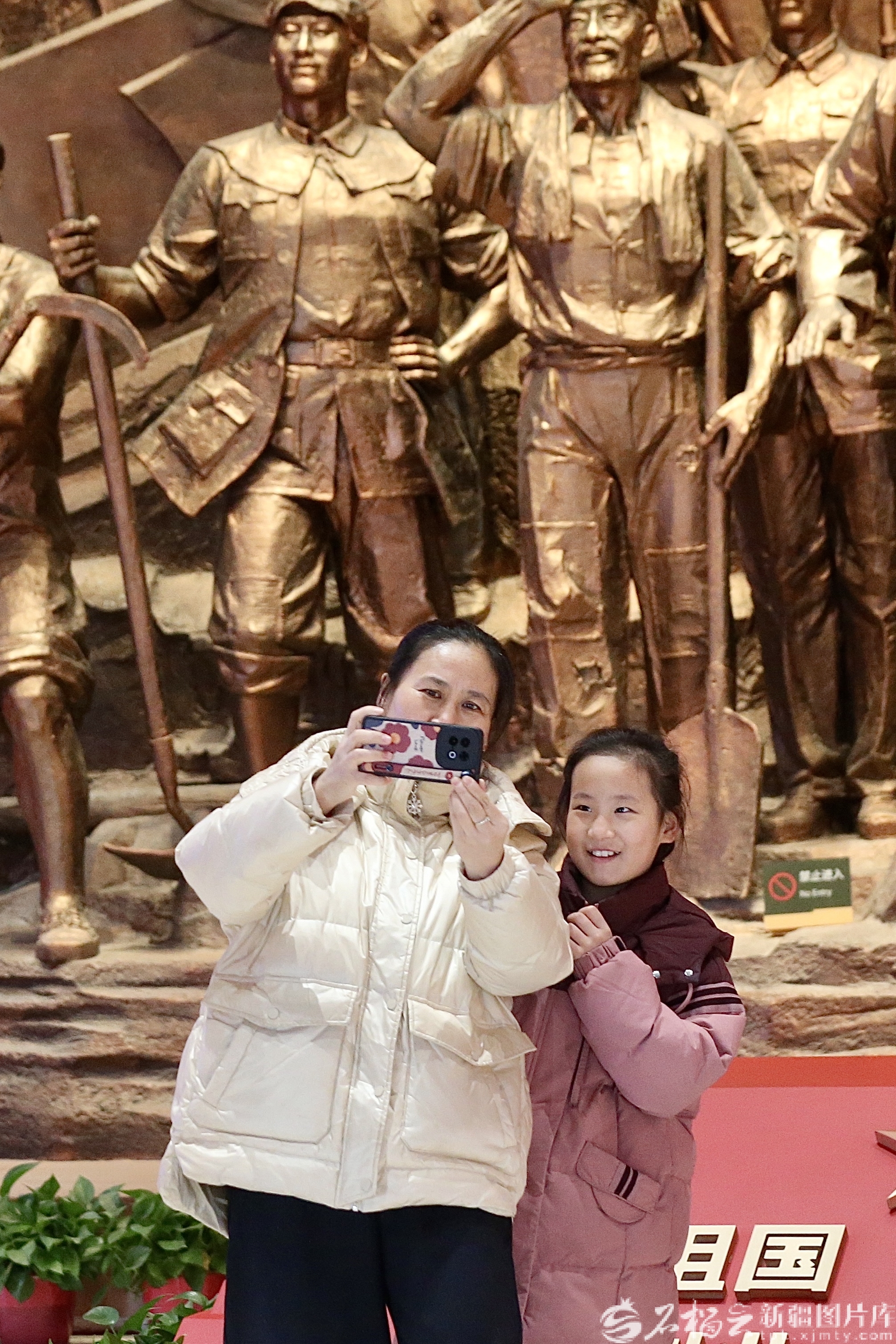 2月16日,新疆兵團軍墾博物館,市民正在雕像前打卡拍照。