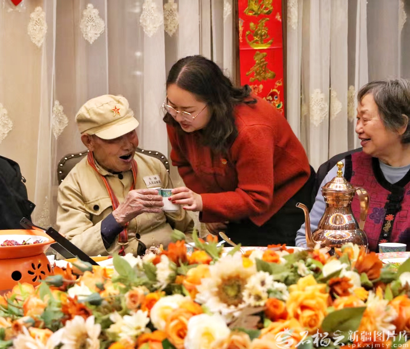 天山網(wǎng)-新疆日?qǐng)?bào)訊(記者王立華攝影報(bào)道)2月16日晚,除夕之夜,庫爾勒市西域胡楊餐廳內(nèi)暖意融融、歡聲笑語。梨香園社區(qū)組織抗美援朝老戰(zhàn)士、孤寡老人及居民代表20余人歡聚一堂,共度除夕、喜迎馬年新春。