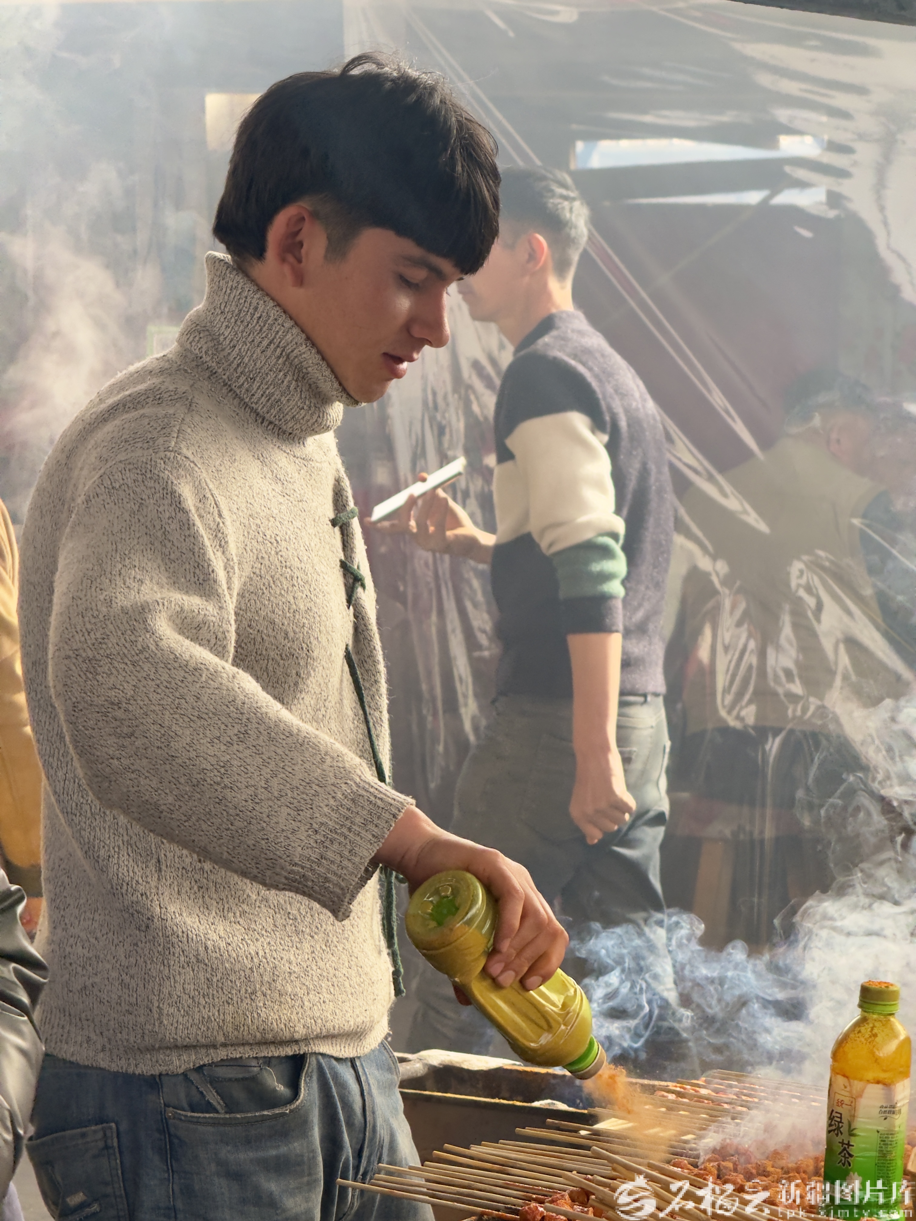 2月10日,皮山縣木吉鎮(zhèn)巴扎餐飲區(qū)燒烤攤,燒烤師傅正在烤制美食。天山網(wǎng)-新疆日報記者 拍熱扎提·阿不都 攝