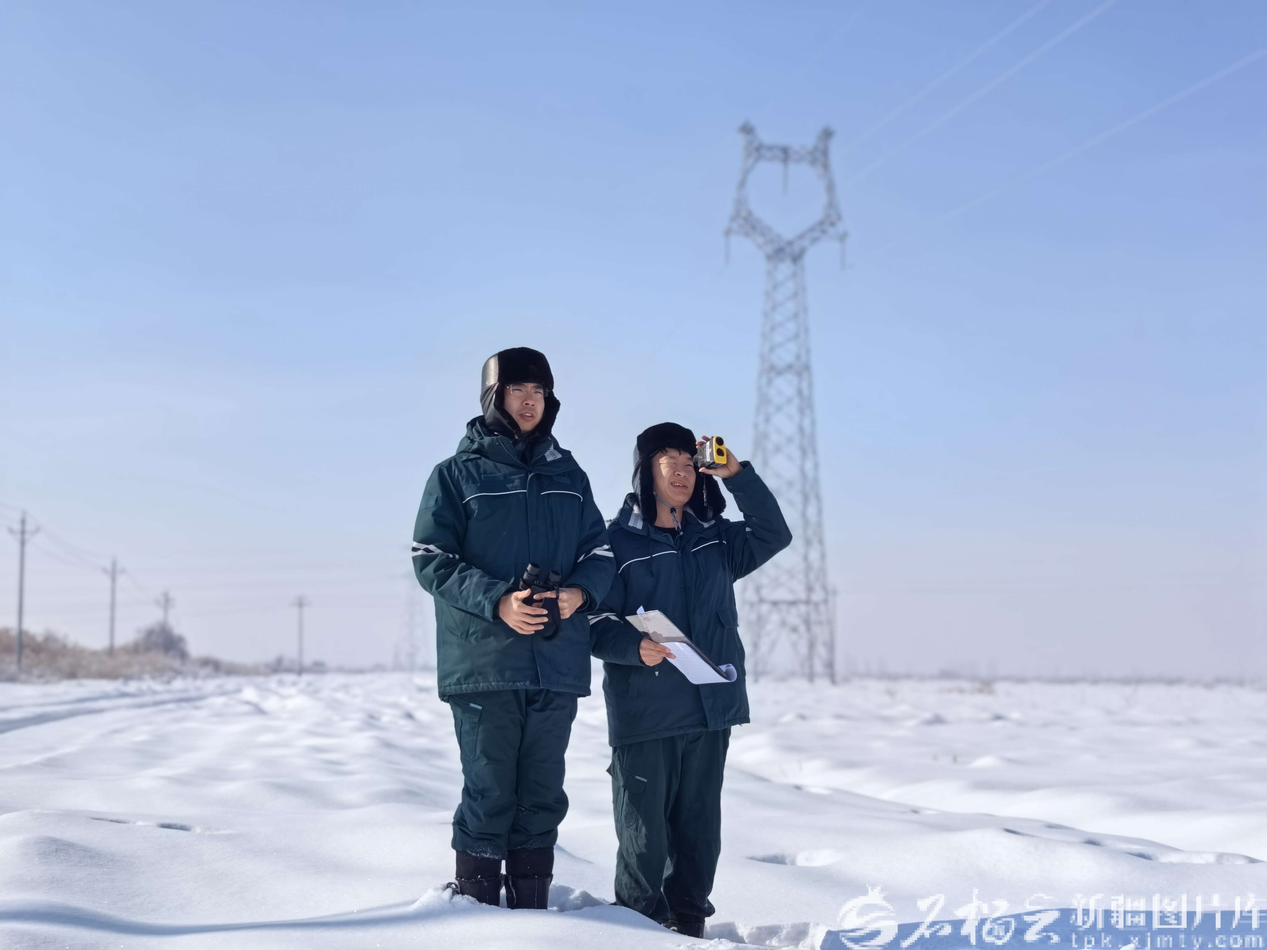 2月15日,國(guó)網(wǎng)昌吉供電公司輸電運(yùn)檢中心運(yùn)維人員在瑪納斯縣對(duì)春節(jié)保電線路110千伏瑪南一、二線進(jìn)行特巡,查看導(dǎo)線覆冰覆雪情況,導(dǎo)線弧垂情況,線路廊道內(nèi)有無(wú)機(jī)械等施工作業(yè)等,保障春節(jié)期間輸電線路安全穩(wěn)定運(yùn)行。張偉 攝