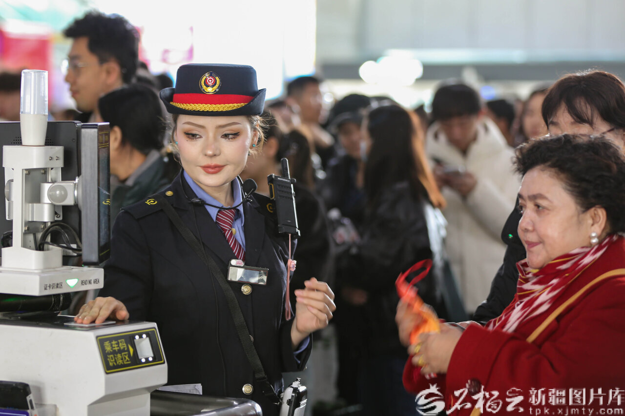 天山網(wǎng)-新疆日報(bào)訊(記者蔡增樂攝影報(bào)道)2月19日,農(nóng)歷正月初三,哈密火車站內(nèi)人流如織,秩序井然。伴隨著列車清脆的鳴笛聲,客運(yùn)員迪麗胡瑪爾·阿里木正忙碌地引導(dǎo)旅客檢票登車。這是她入職后迎來的第一個春運(yùn),雖然臉上難掩疲憊,但眼中閃爍著激動的光芒:“今天是春節(jié)假期的第二個班,看到旅客能順利踏上歸途,我心里特別高興?!?/p>