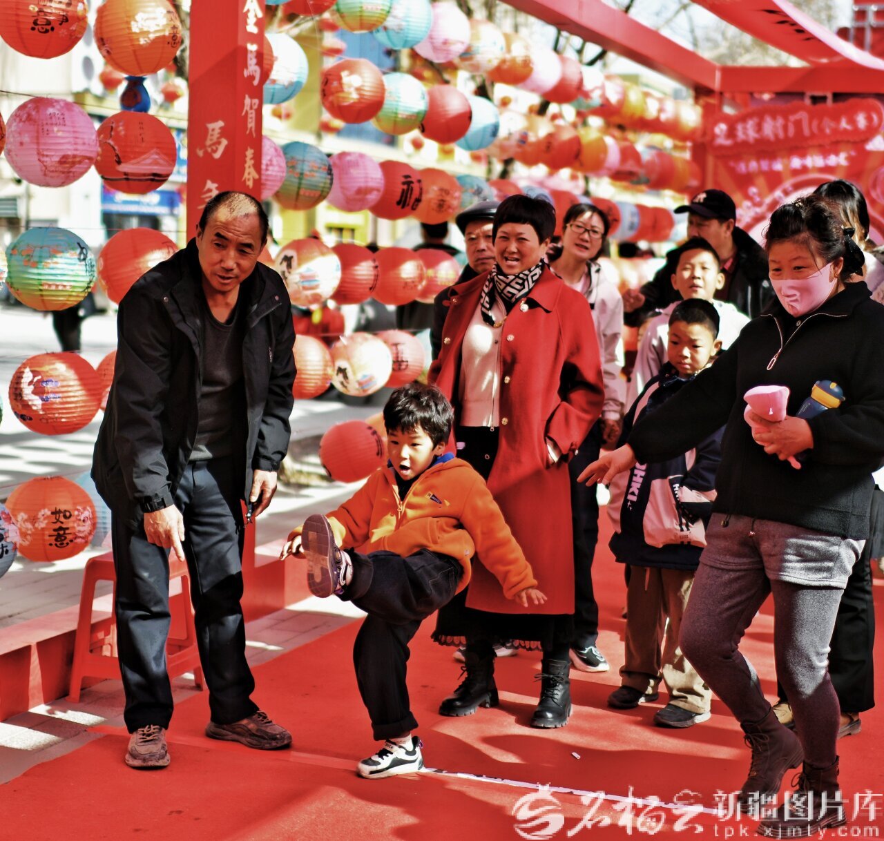2月22日,游客在庫(kù)爾勒梨城美食街玩踢足球游戲。天山網(wǎng)-新疆日?qǐng)?bào)記者 王立華攝