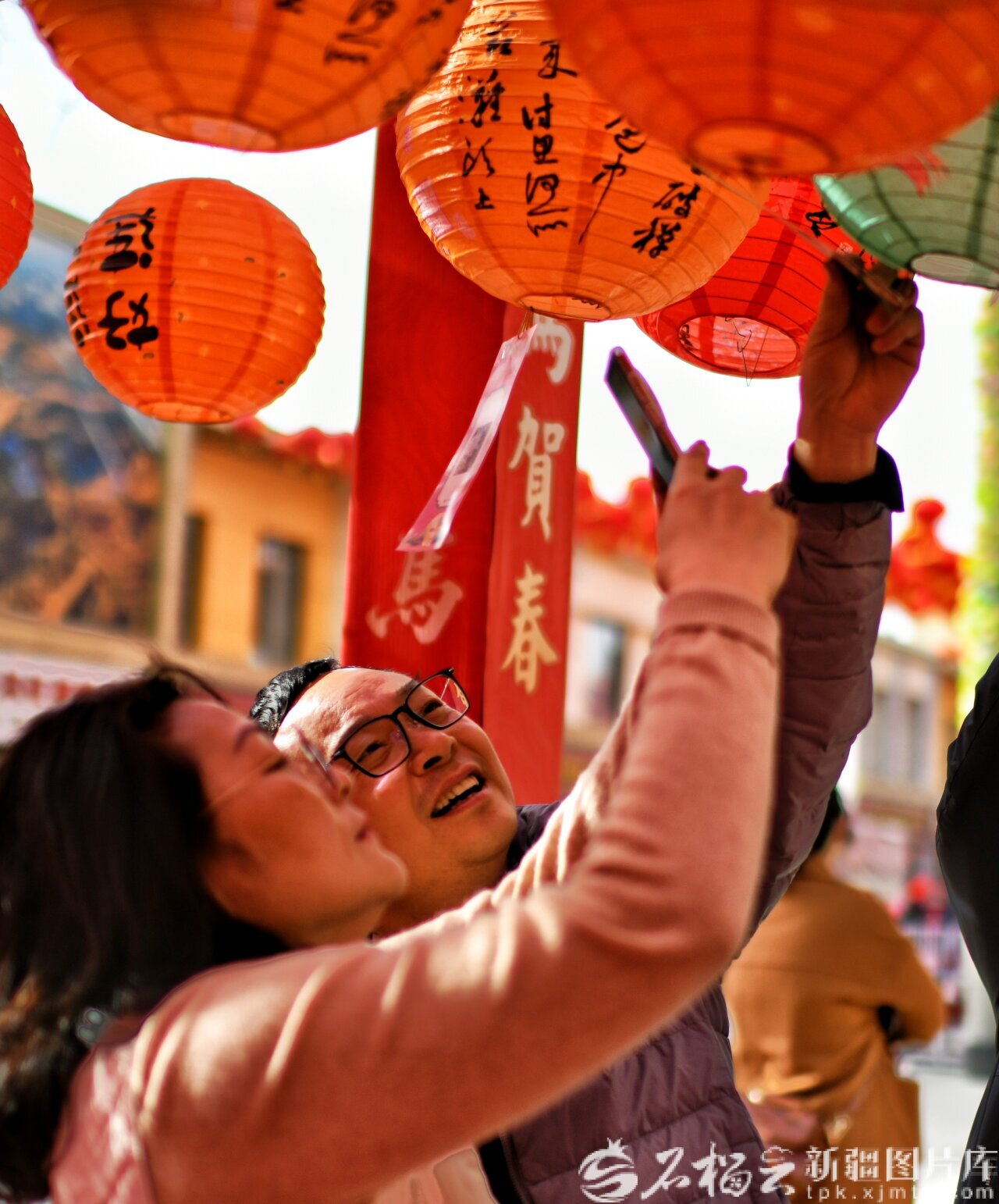 2月22日,庫(kù)爾勒梨城美食街,游客在猜燈謎。天山網(wǎng)-新疆日?qǐng)?bào)記者 王立華攝
