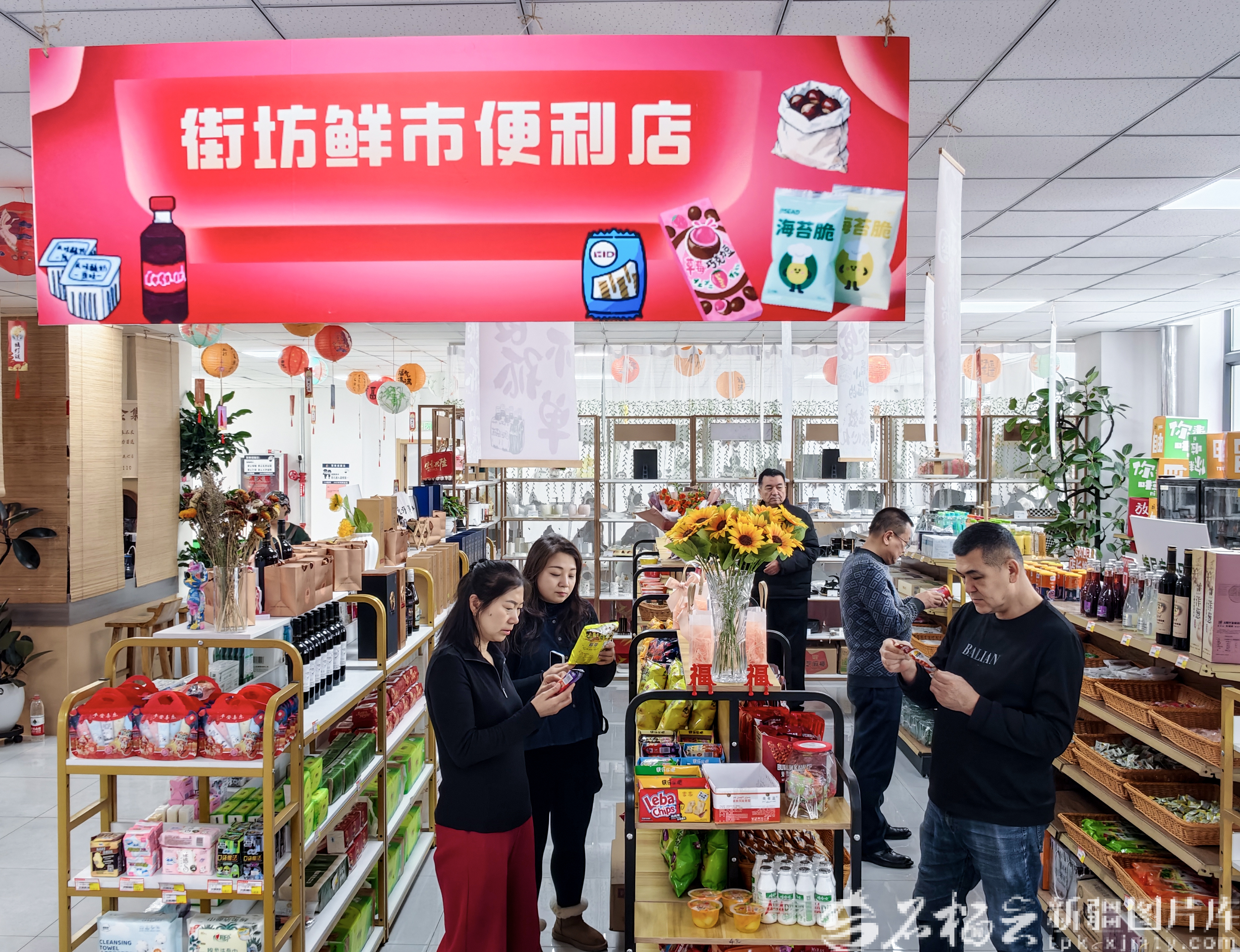 2月27日,居民在烏魯木齊市天山區(qū)賽馬場街道賽馬場西社區(qū)鄰里中心設立的超市購買物品。