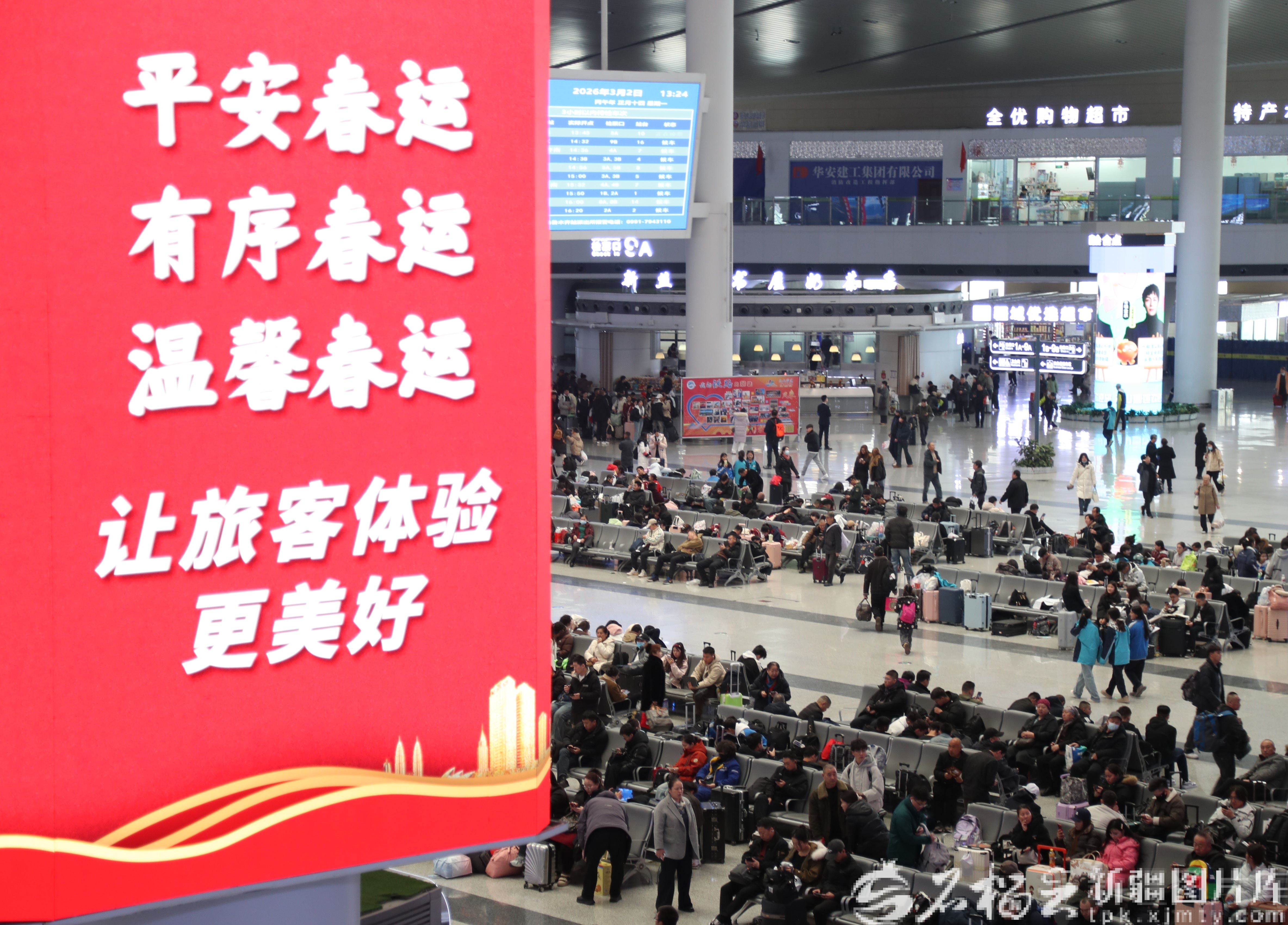 3月2日,旅客在烏魯木齊站有序候車。