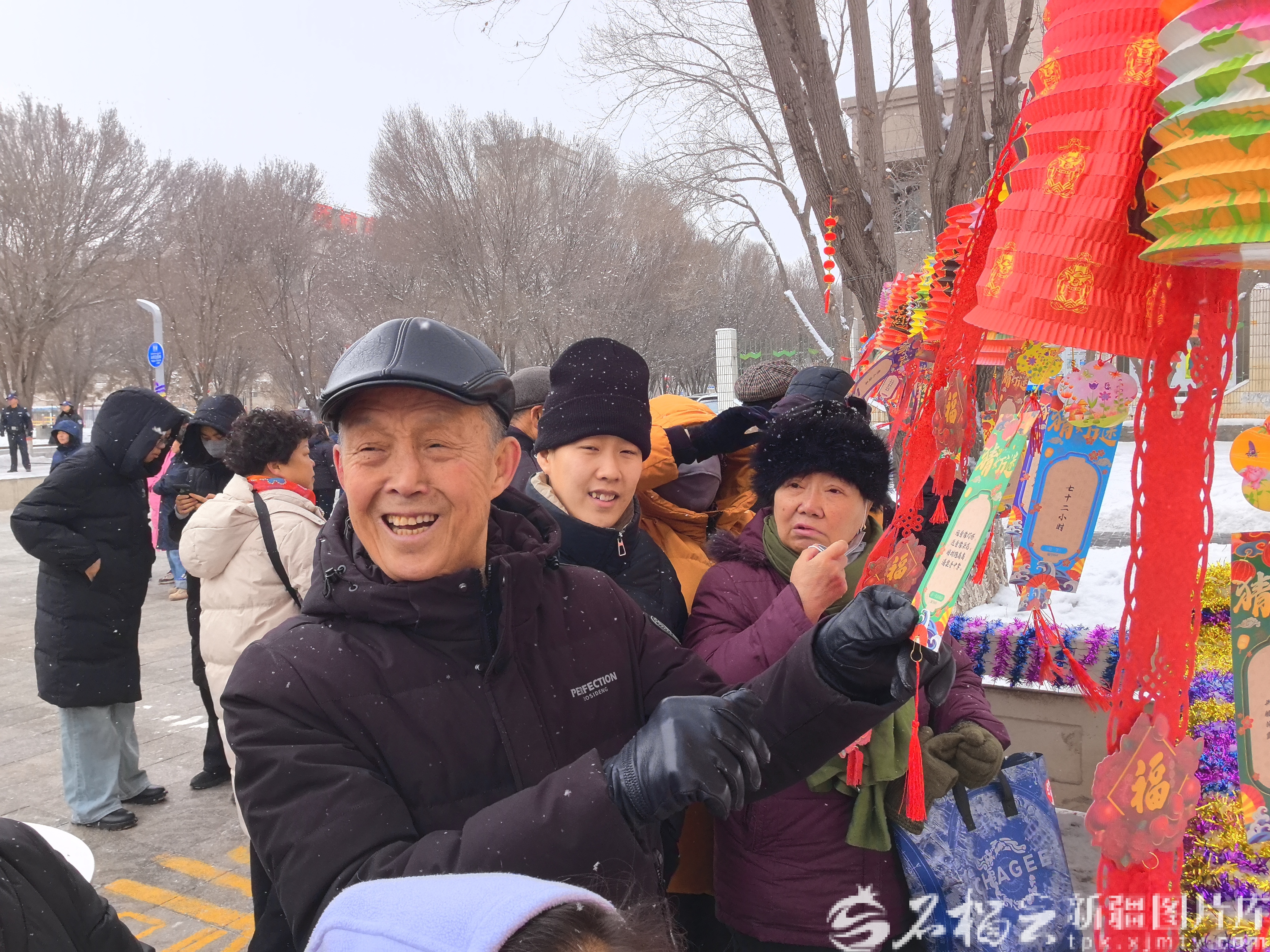 2月28日,烏魯木齊經(jīng)濟(jì)技術(shù)開發(fā)區(qū)(頭屯河區(qū))火車西站街道的燈塔廣場上,市民們在猜燈謎。王思媛攝