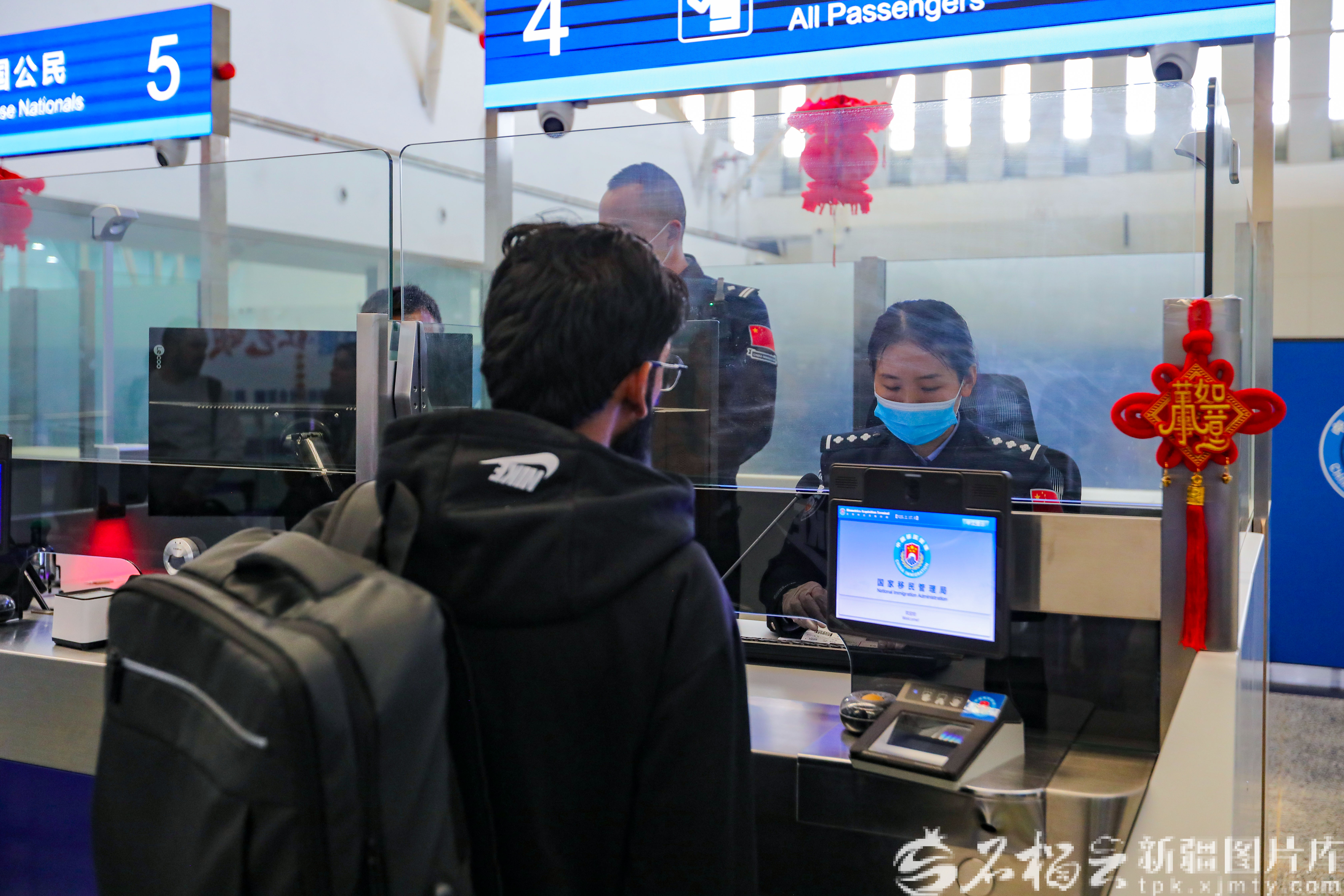 喀什出入境邊防檢查站民警為外籍留學(xué)生辦理入境手續(xù)。王楚航 攝