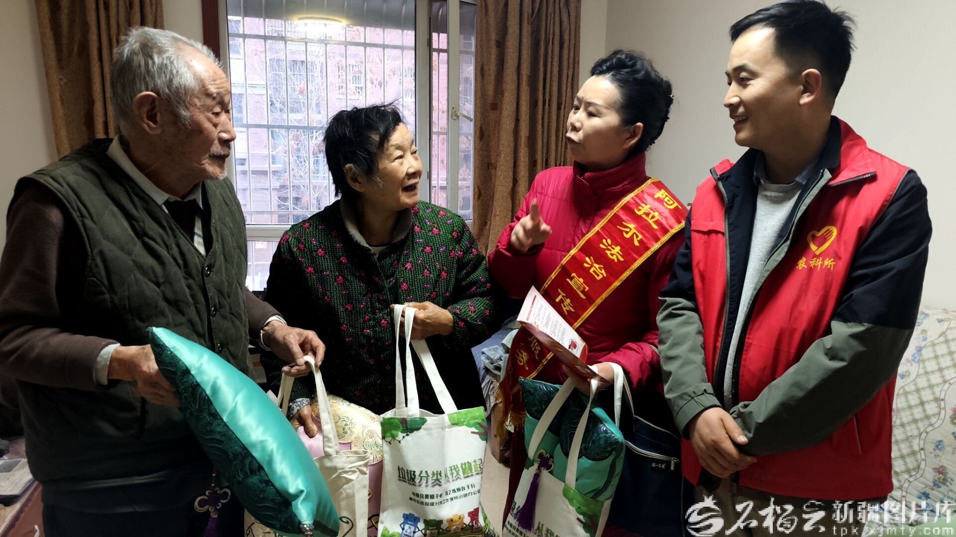 3月的南疆,乍暖還寒。元宵節(jié)前夕,新疆生產(chǎn)建設(shè)兵團(tuán)第一師阿拉爾市幸福路街道新苑社區(qū)三五九小區(qū)里,75歲的獨(dú)居老人季丁生推開家門,便看見兩個(gè)穿著紅馬甲的年輕人站在門口:是社區(qū)“愛心幫幫團(tuán)”的社工雷洋和張文娜。